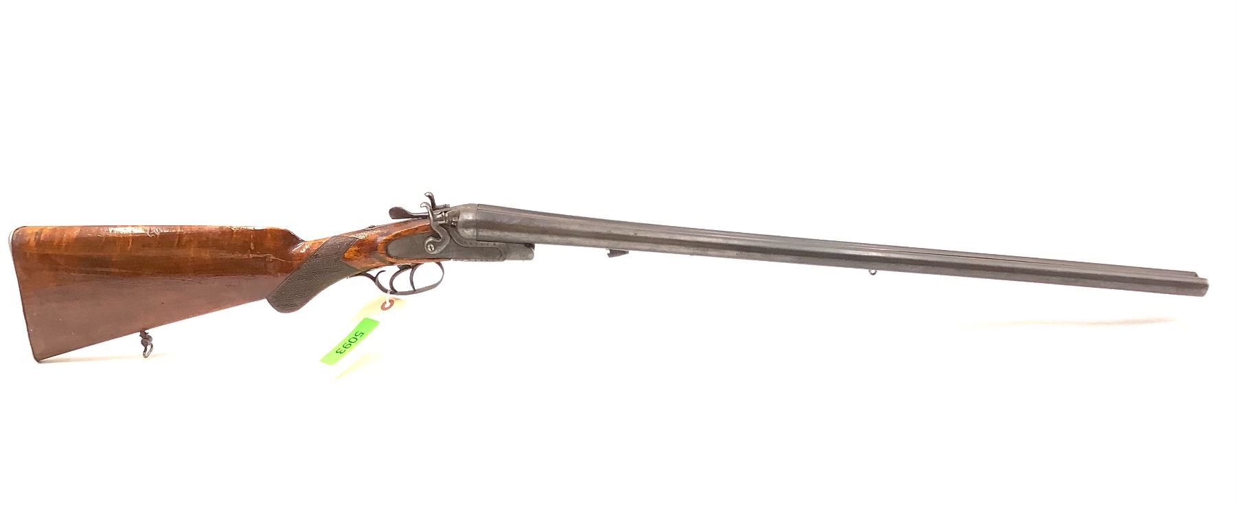 Belgian Side By Side 12Ga Shotgun Exposed Hammers 29" Barrels. Bead sight, missing forend wood. Steel butt pad, rear stock cracked near rear. This is a non-restricted firearm.