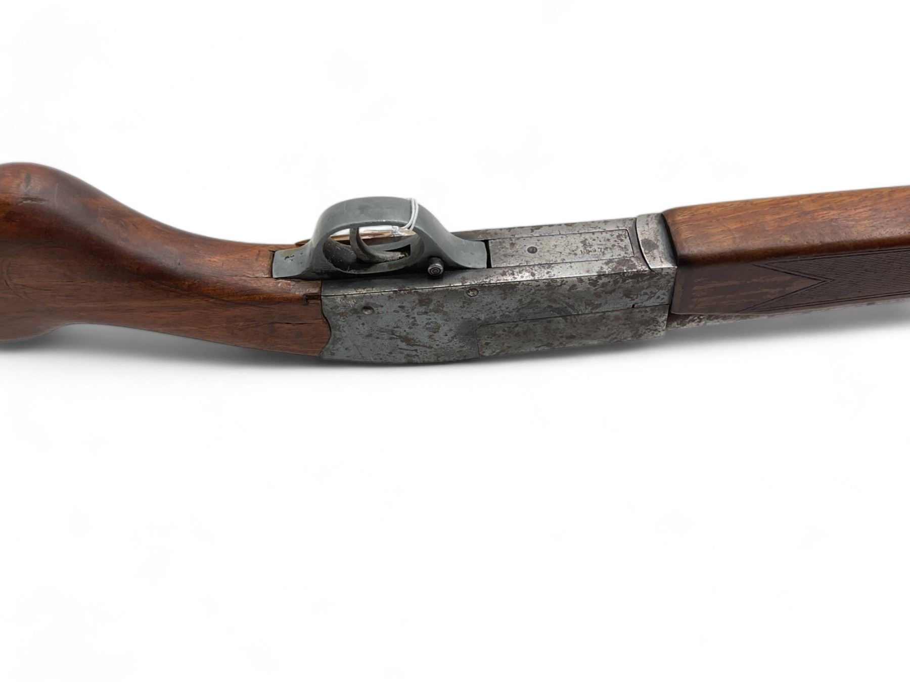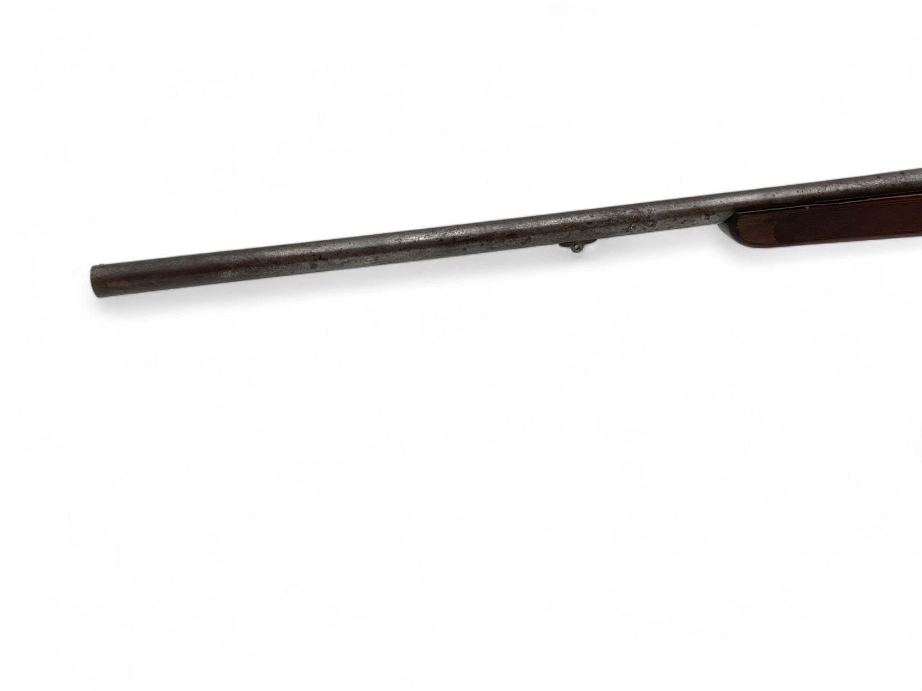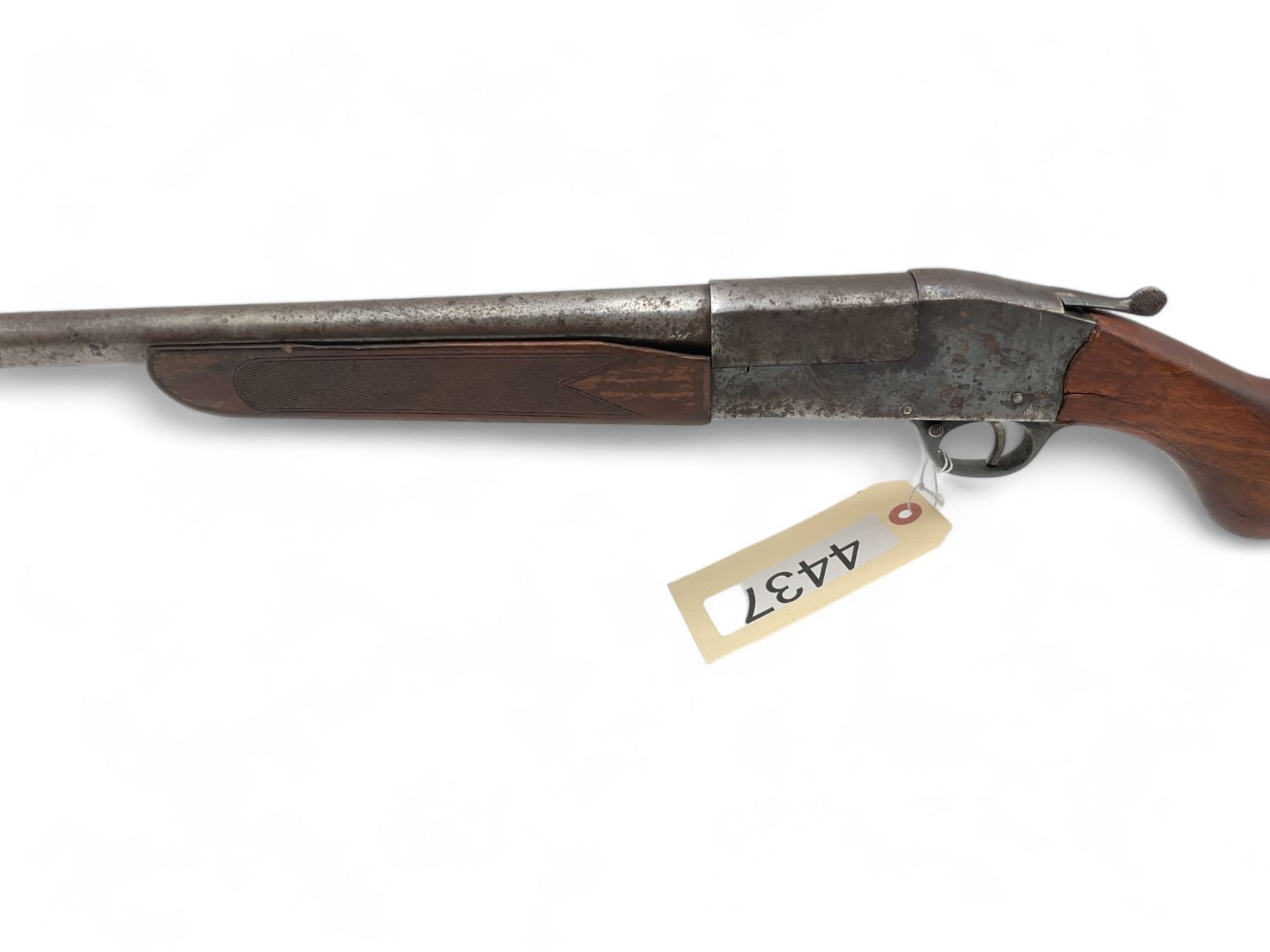 Belgian Single Shot 12Ga Shotgun 30" Barrel Wood Stock. Bead sight, fixed choke. Rear stock is cracked in several places and loose. This is a non-restricted firearm.