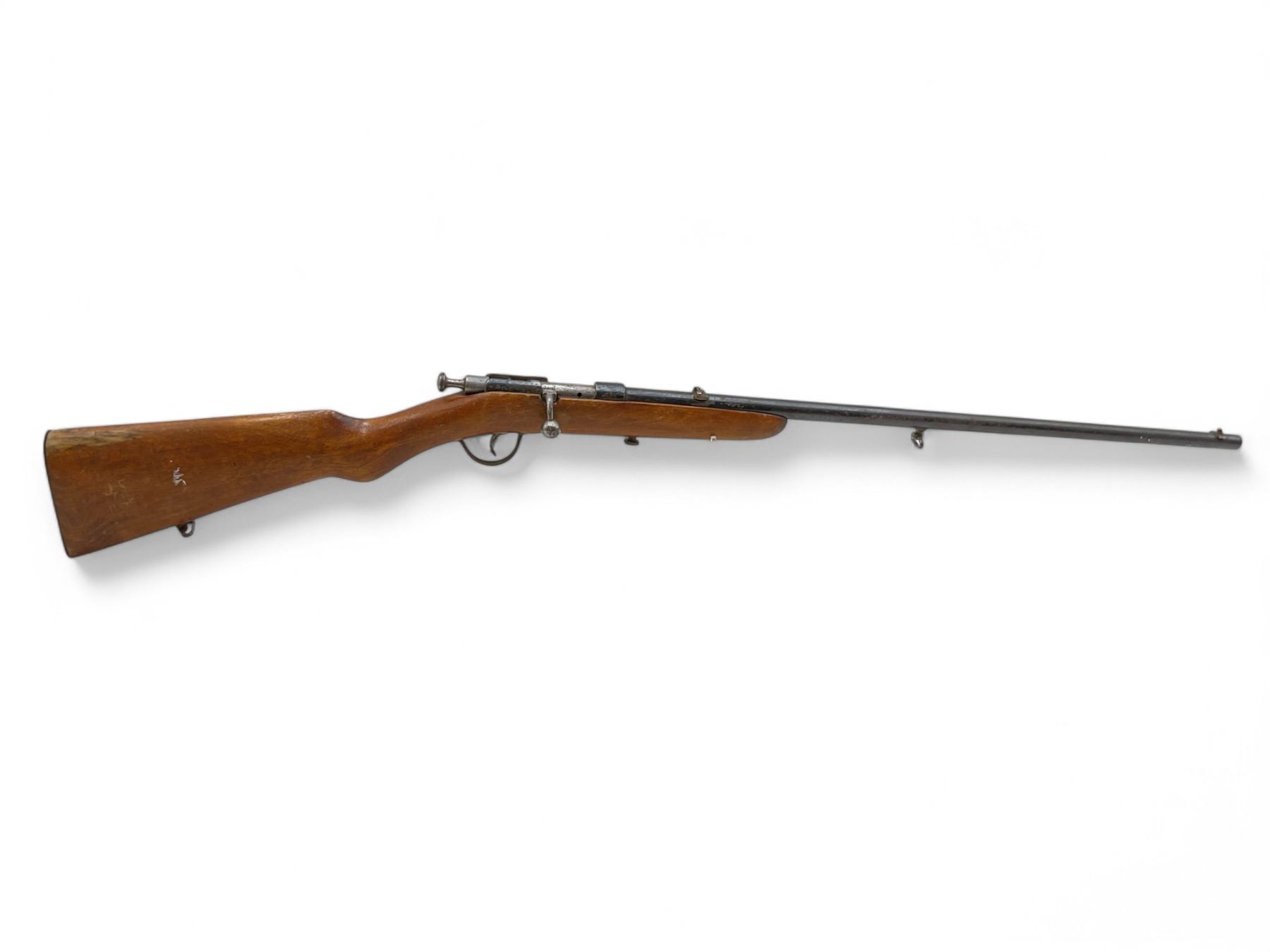 Belgiskt Single Shot Rifle 22LR 23" Barrel Wood Stock. Fixed front and rear sight. This is a non-restricted firearm