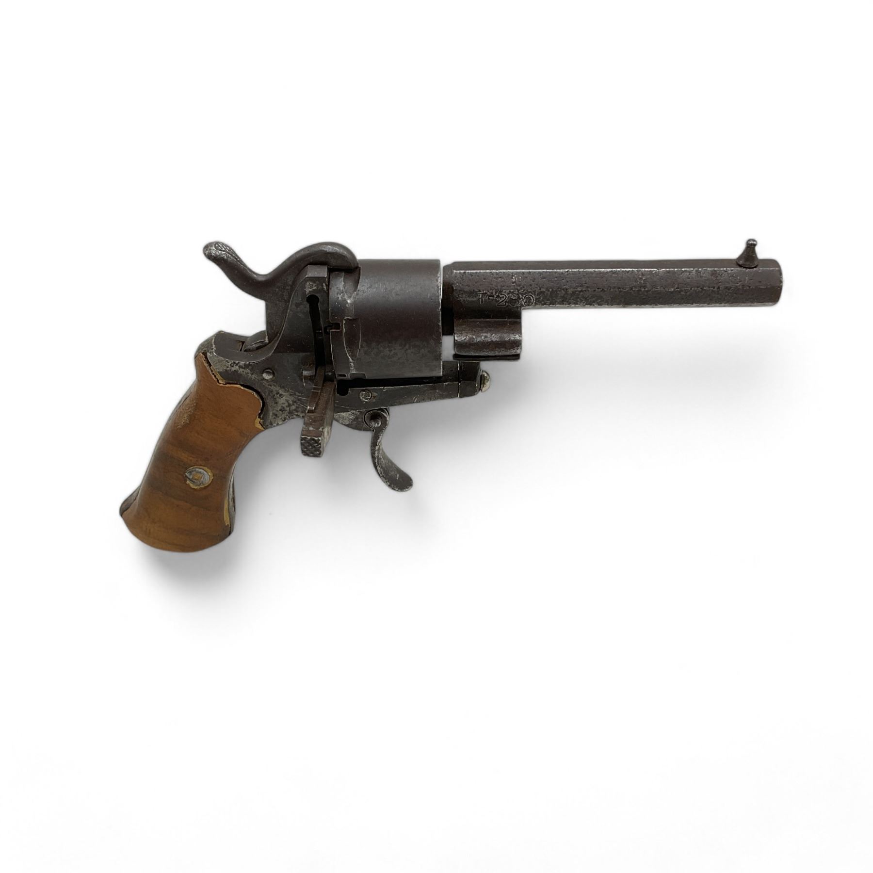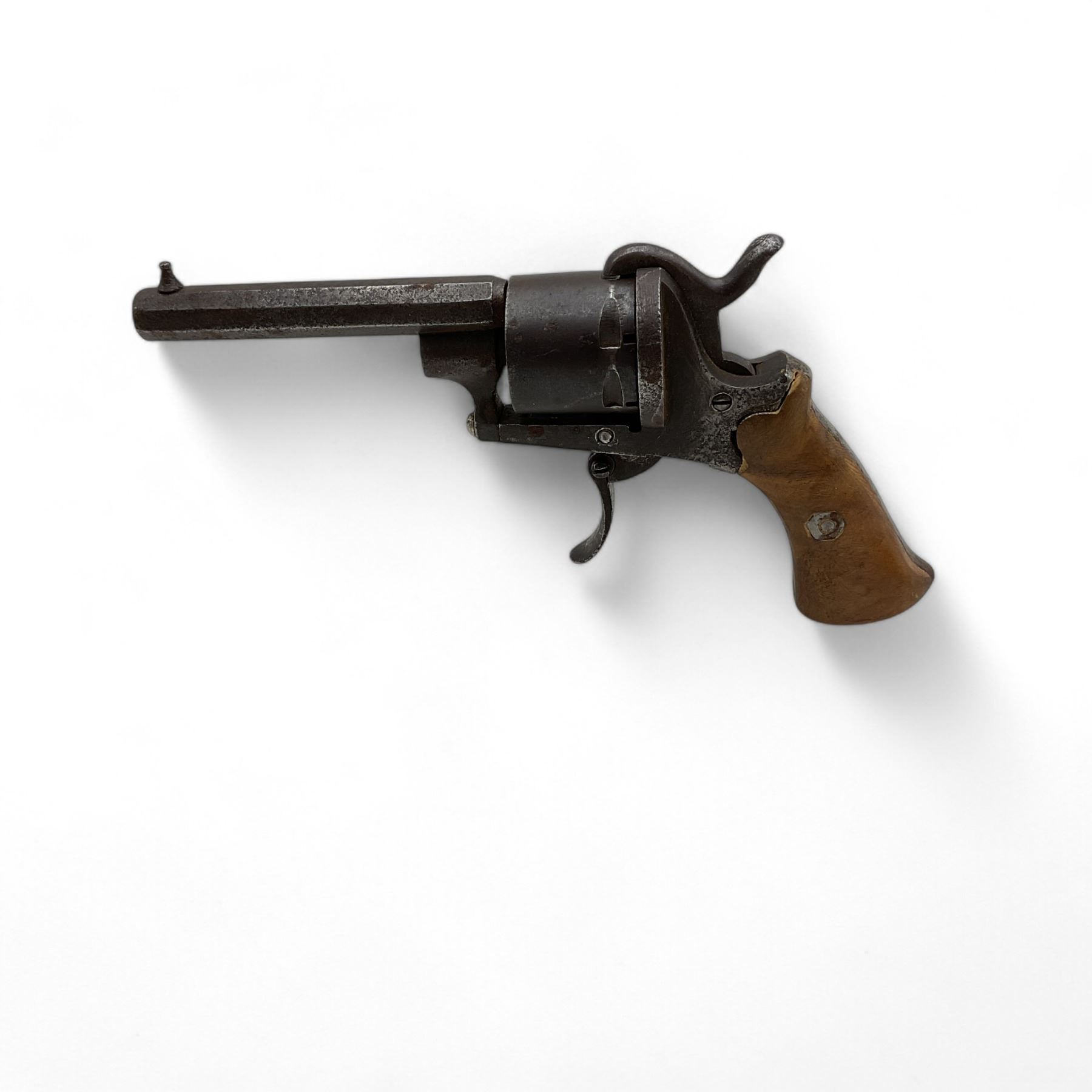 Belgium Pinfire Revolver 3.25" Barrel, Antique. 6 shot; loading gate does not stay shut. Hammer will not remain cocked; trigger is loose. You must be over 18 years of age to purchase this item; no license required as this is an antique.