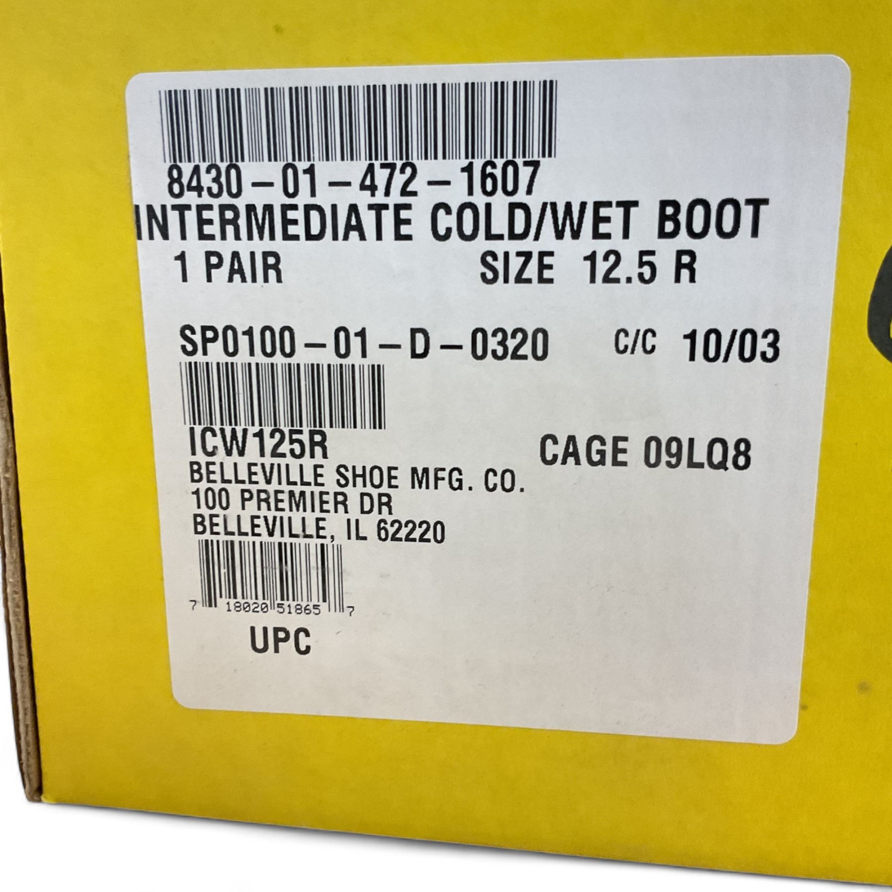 Belleville Intermediate Cold/ Wet Boots with Liners, Size: 12.5 R