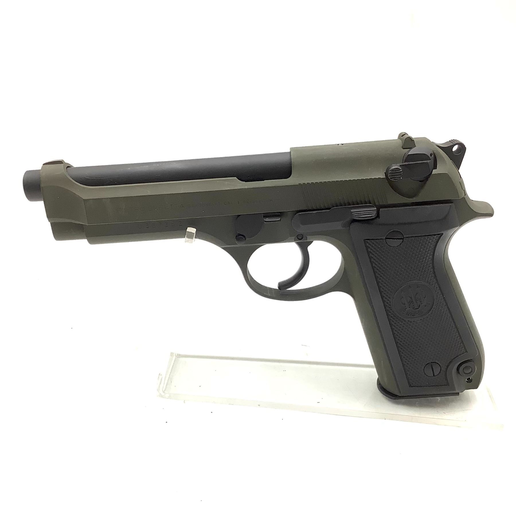 Beretta 92S Semi Auto Pistol 9mm Cerakote Green 5" Barrel, Restricted. Includes one magazine. This is a restricted firearm.