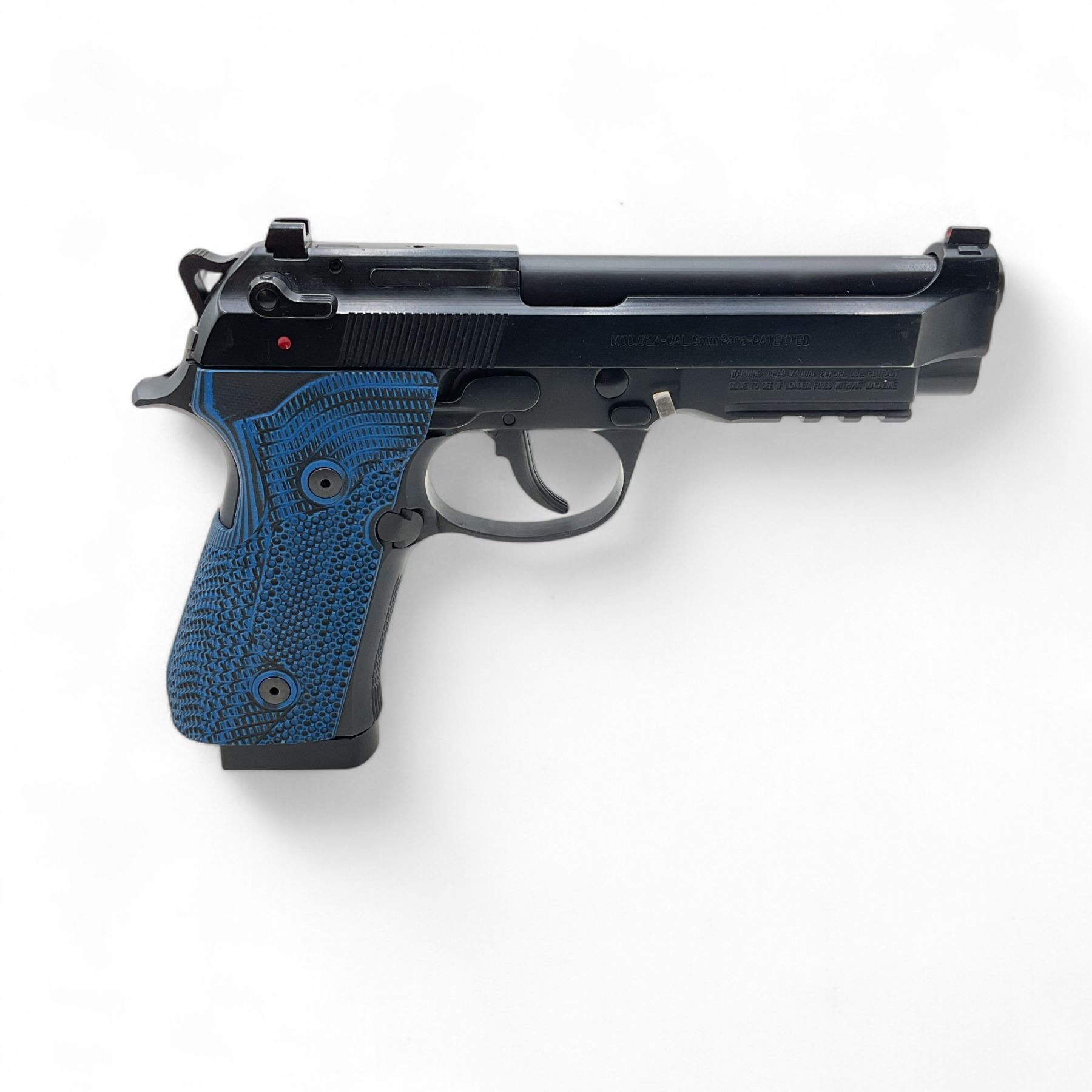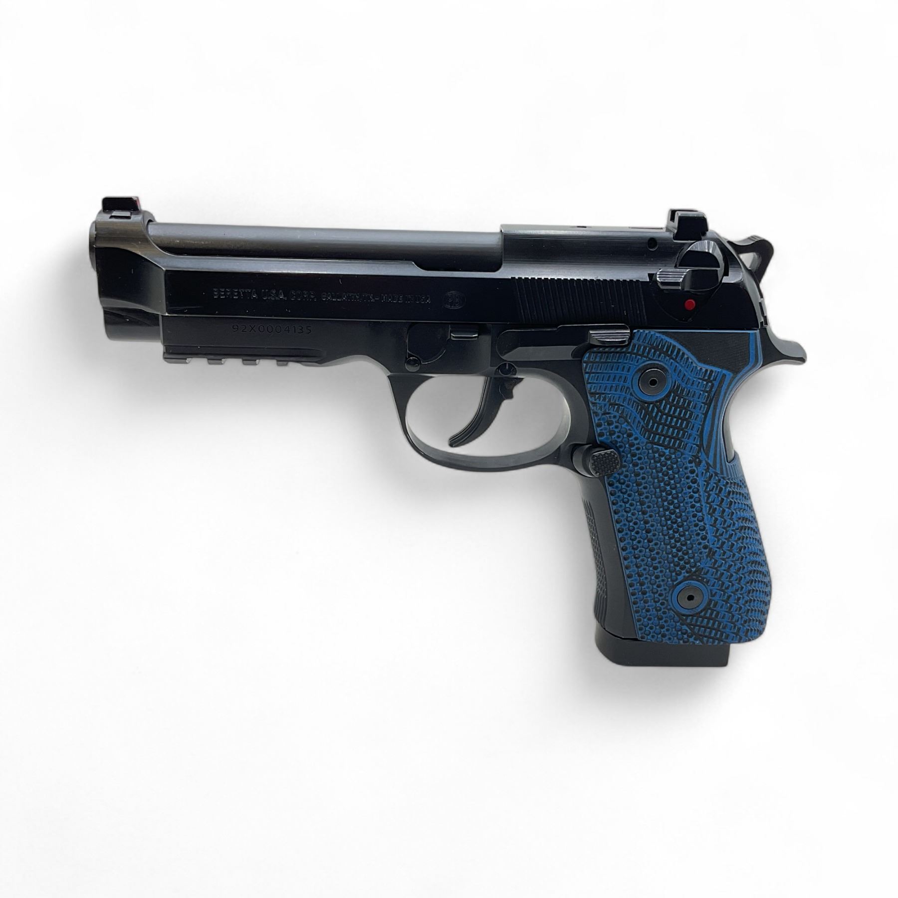Beretta 92X Semi Auto Pistol 9MM 4.9" Barrel Black With Blue Grips, Restricted. Comes with one detachable magazine.