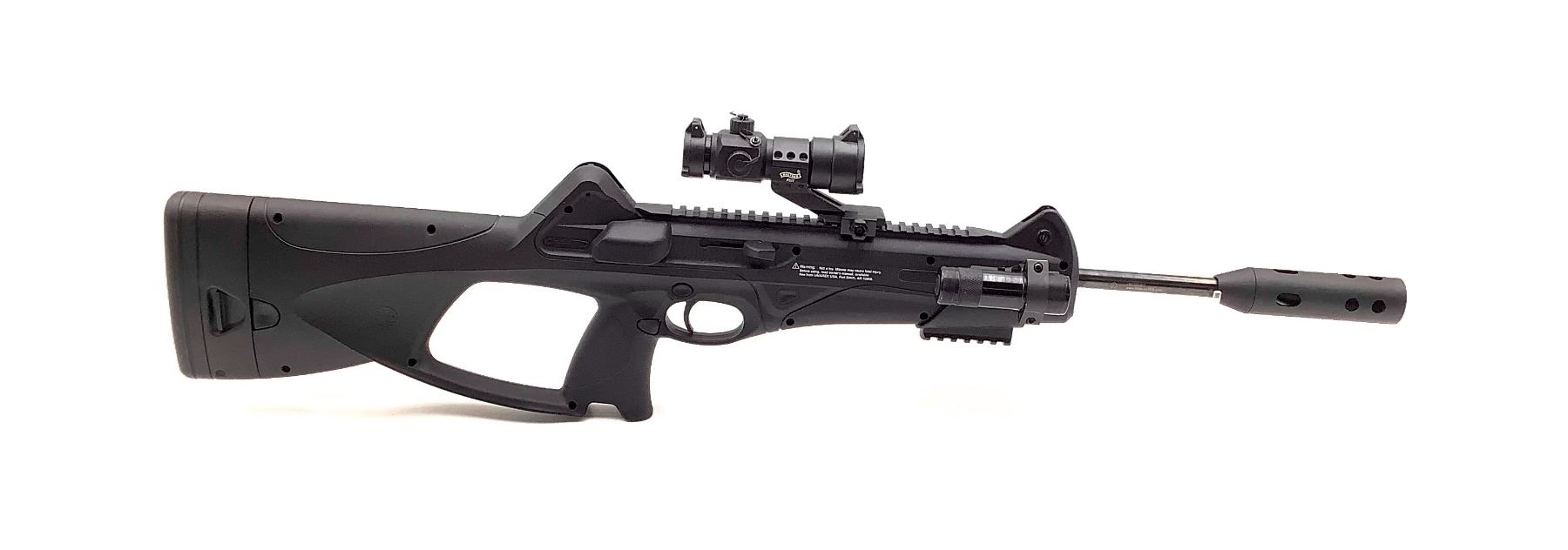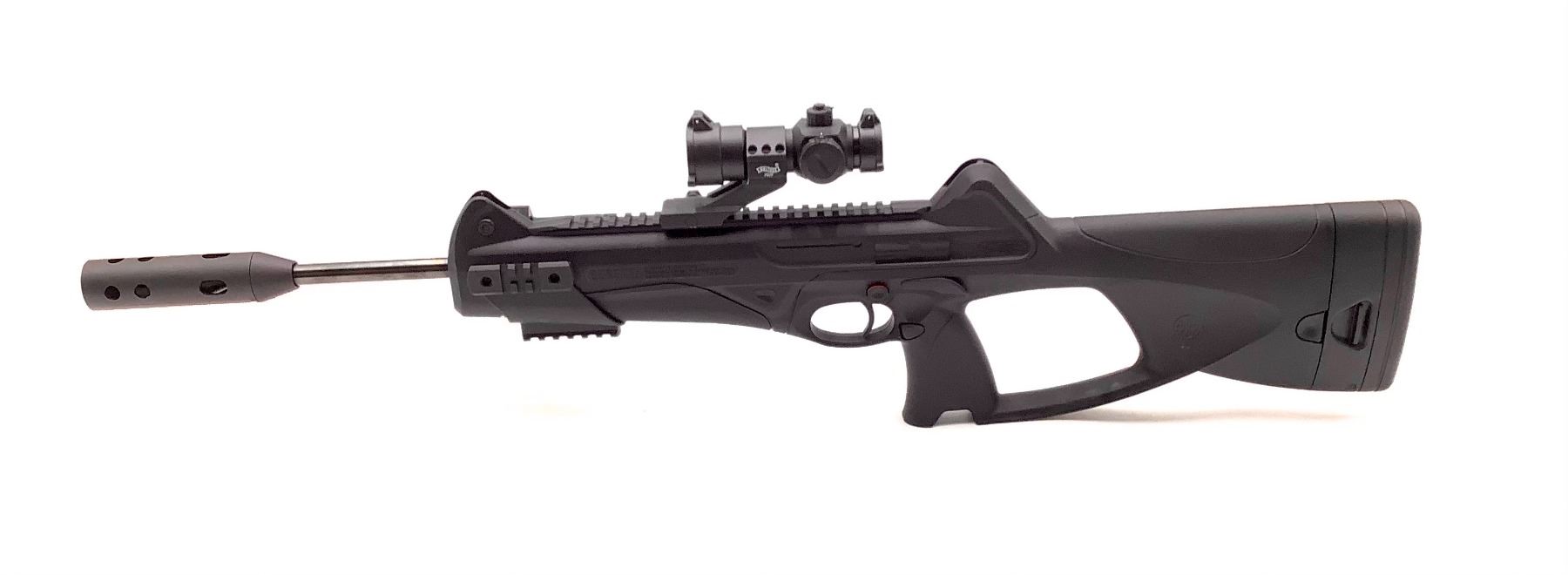 Beretta CX4 Storm .177 CO2 Air Rifle With Walther Red Dot Scope. Includes flashlight mounted on right rail segment. Marks and scratches present on finish.
