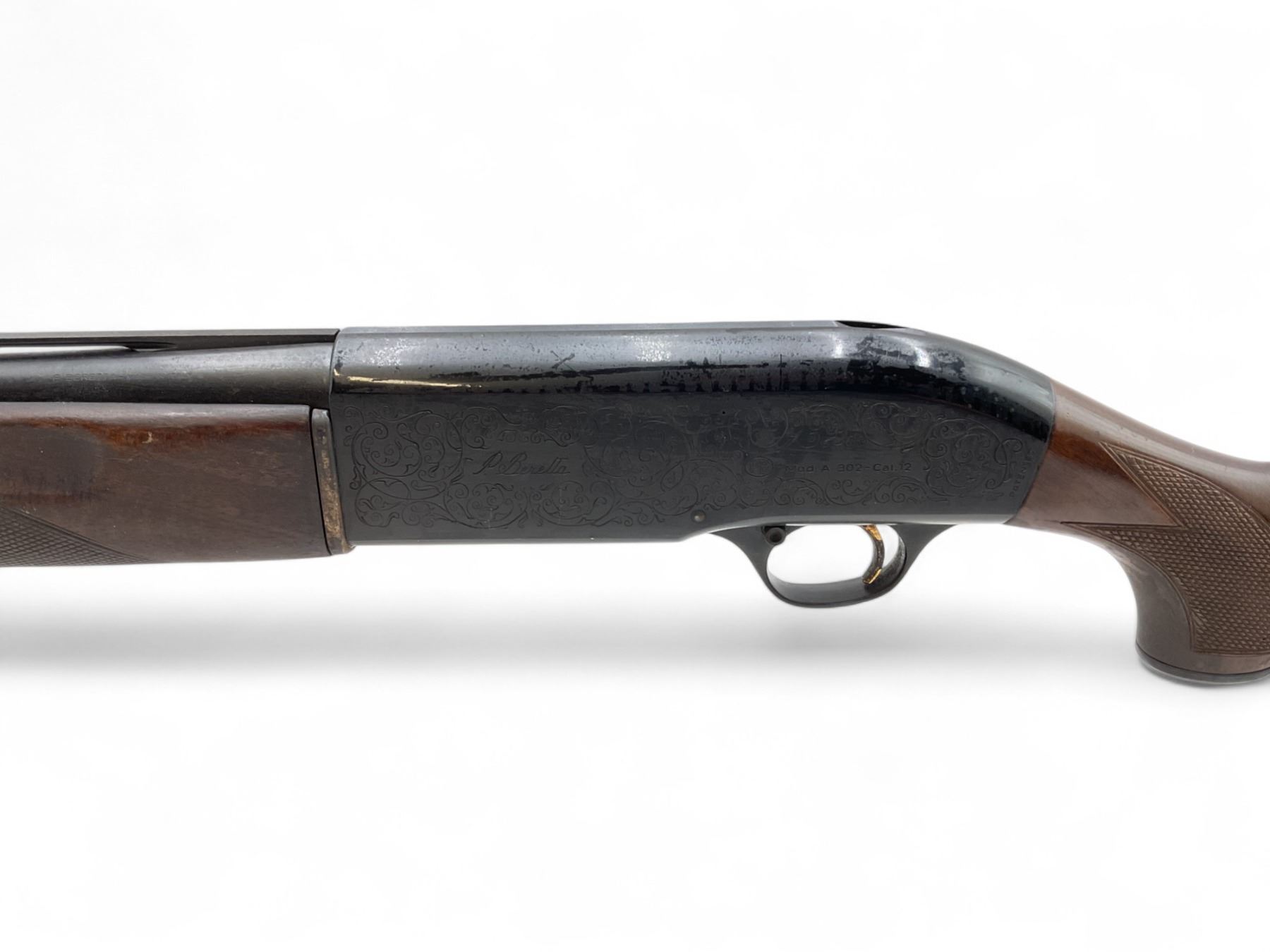 Beretta Model A302 Semi Auto Shotgun 12Ga 2.75" Chamber 28" Vent Rib Barrel Wood Stock. Fiber optic sight is loose; comes with a removable choke. Rear stock has been lengthened and no butt pad present. This is a non-restricted firearm.