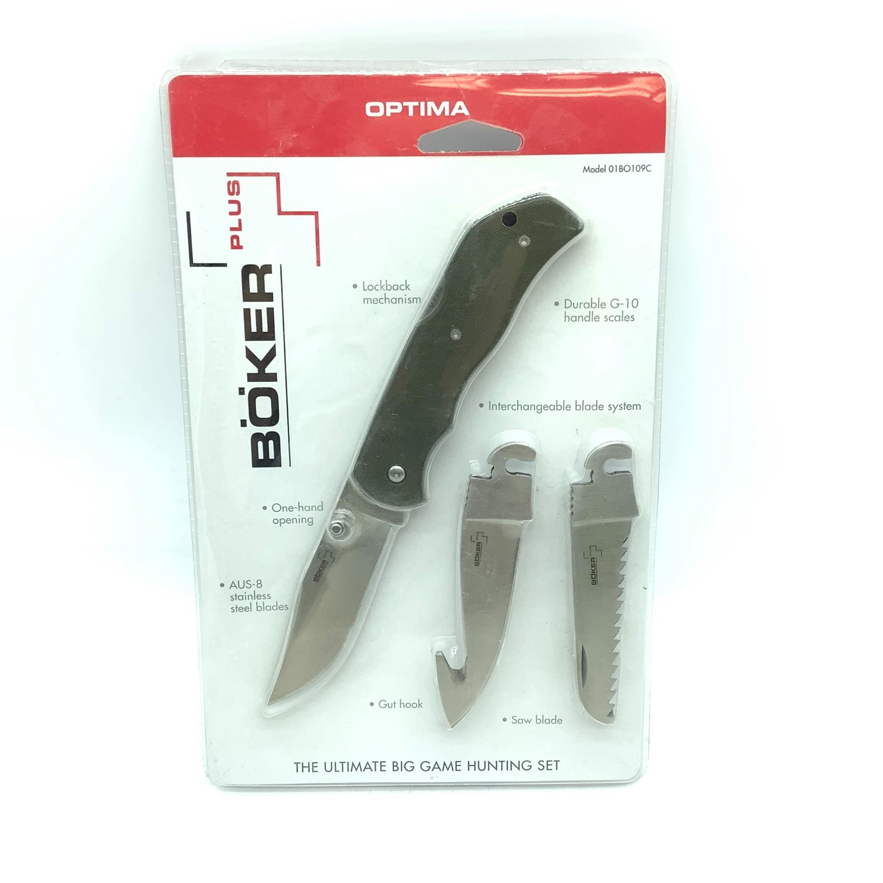 Boker Plus Ultimate Big Game Hunting Set, Replaceable Gut Hook, Saw and Clip Point Blades & Sheath