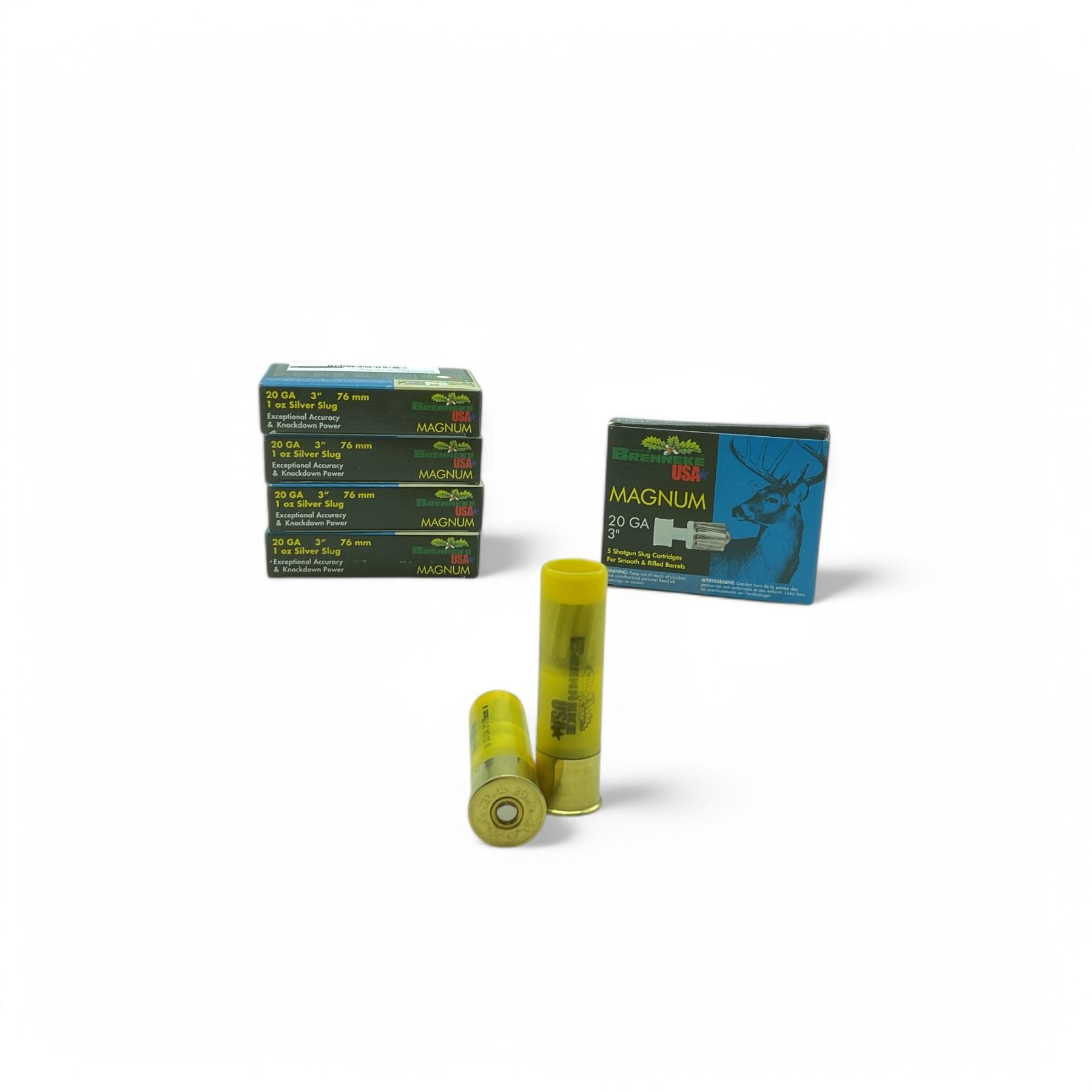 Brenneke Magnum 20 Ga, 3 , 1 oz Silver Slug Ammunition, 25 Rounds