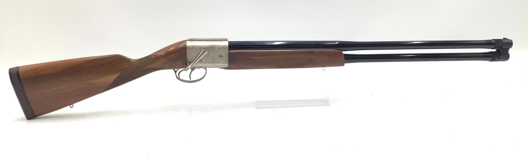 Bretton Double Barrel Sliding Breech 12Ga Shotgun 27.5" Barrels Wood Stock. A truly unique shotgun! Double triggers, fixed chokes. This is a non-restricted firearm.