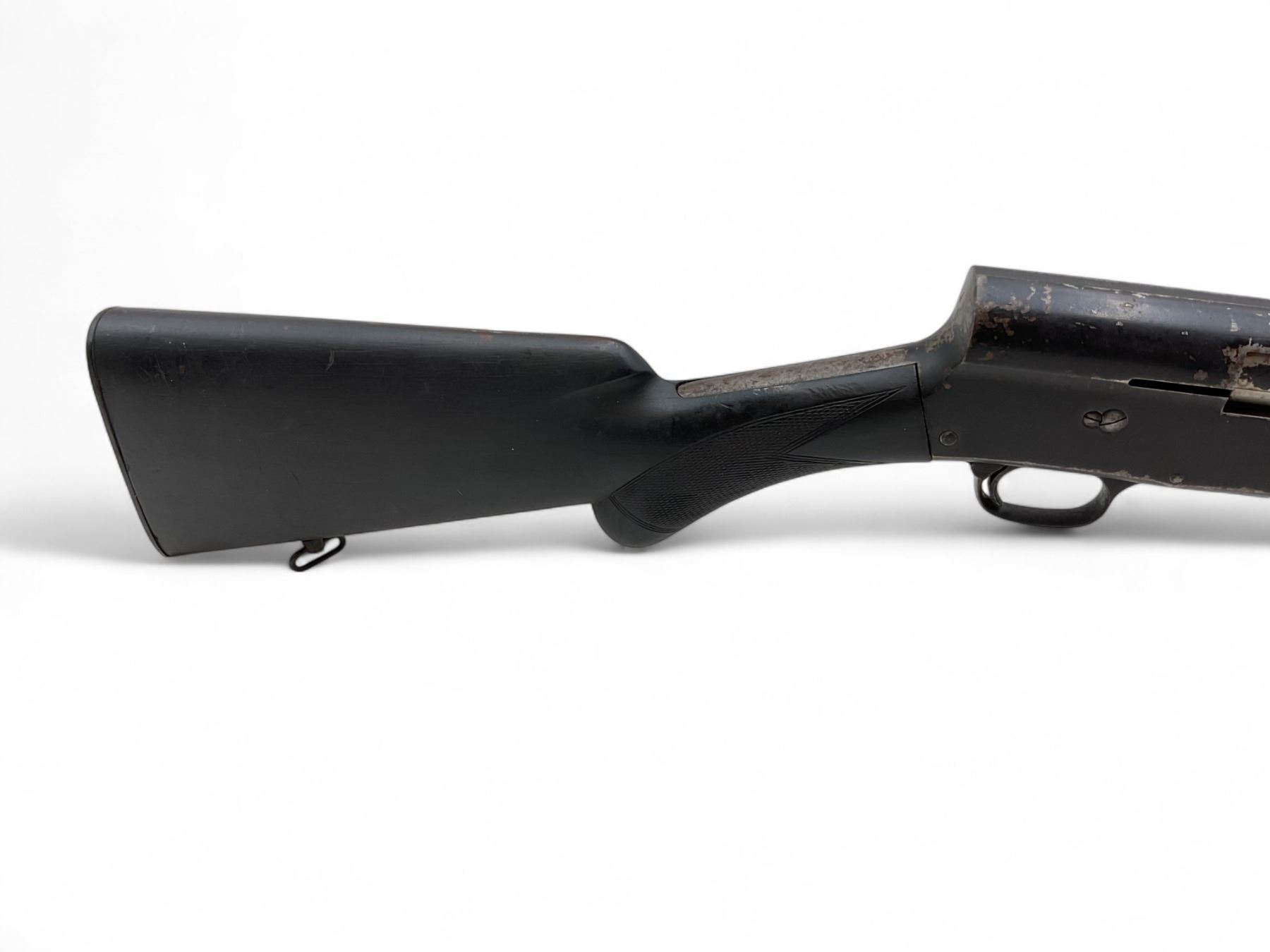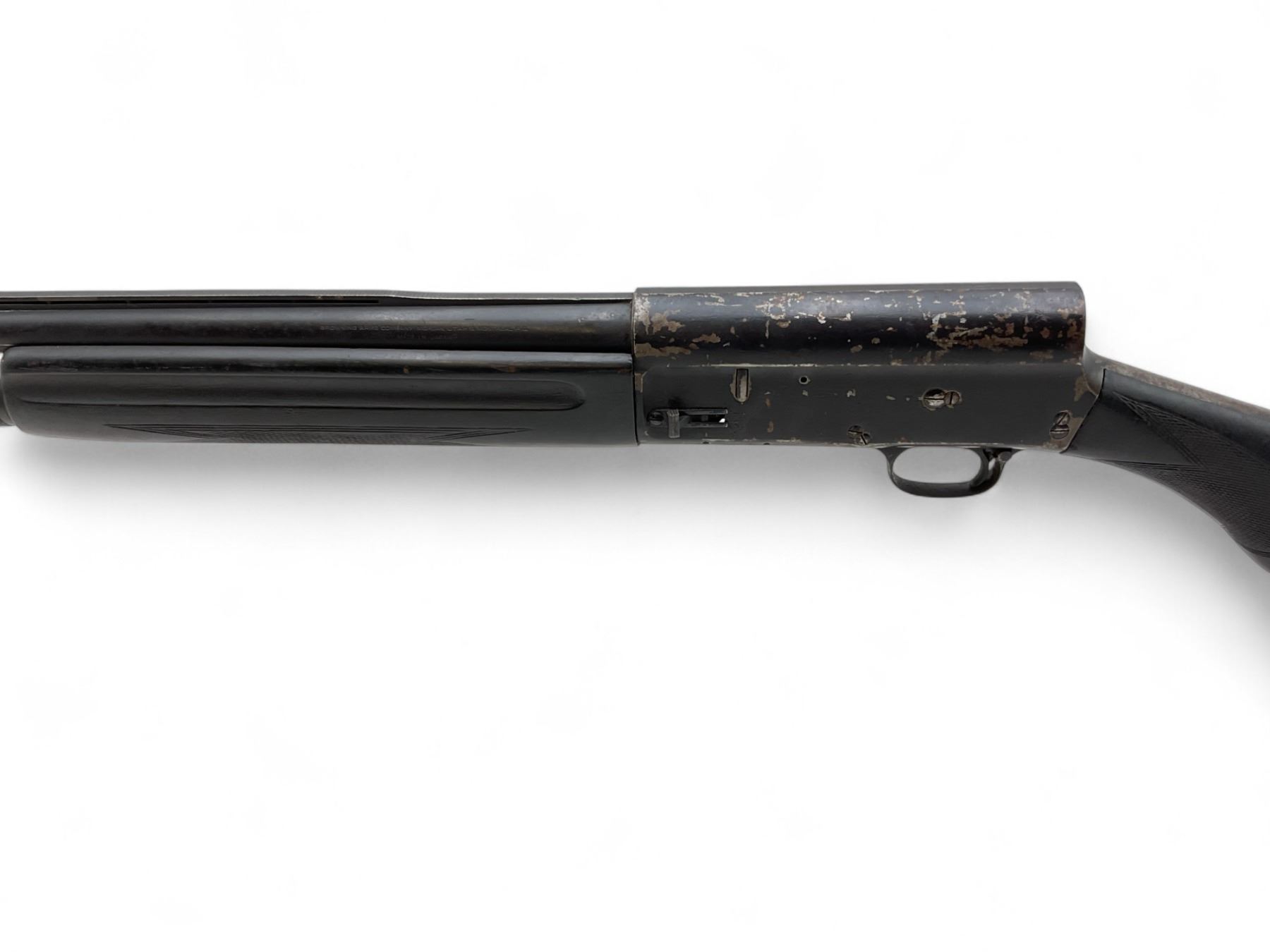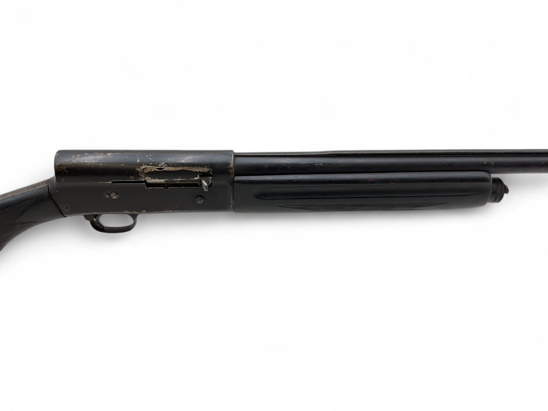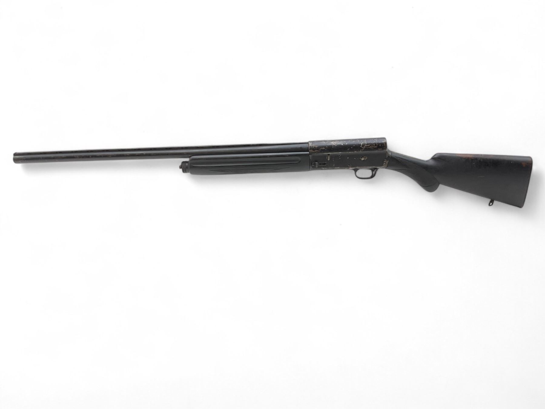 Browning Auto-5 Semi Auto Shotgun 12Ga 2.75" Chamber 28" Vent Rib Barrel Painted Wood Stock. Bead sight; fixed choke. Entire gun has been painted black and paint is peeling. Rear stock has chip at bottom. This is a non-restricted firearm.