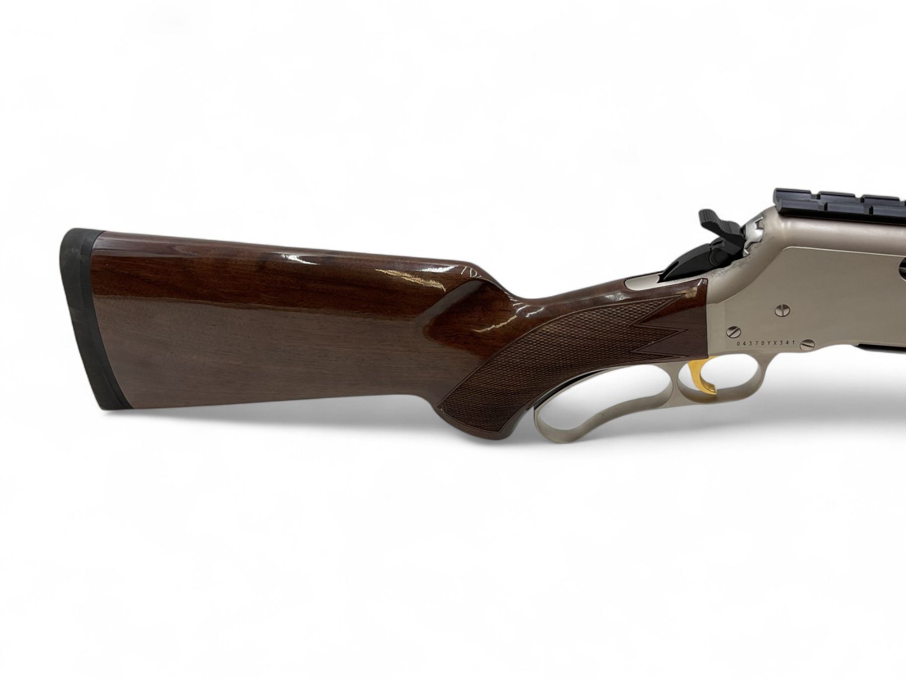 Browning BLR Light Weight Stainless Lever Action Rifle 308 Win 20" Barrel Wood Stock. Comes with one detachable magazine. Factory open sights; receiver drilled and tapped with one piece rail installed. This is a non-restricted firearm.