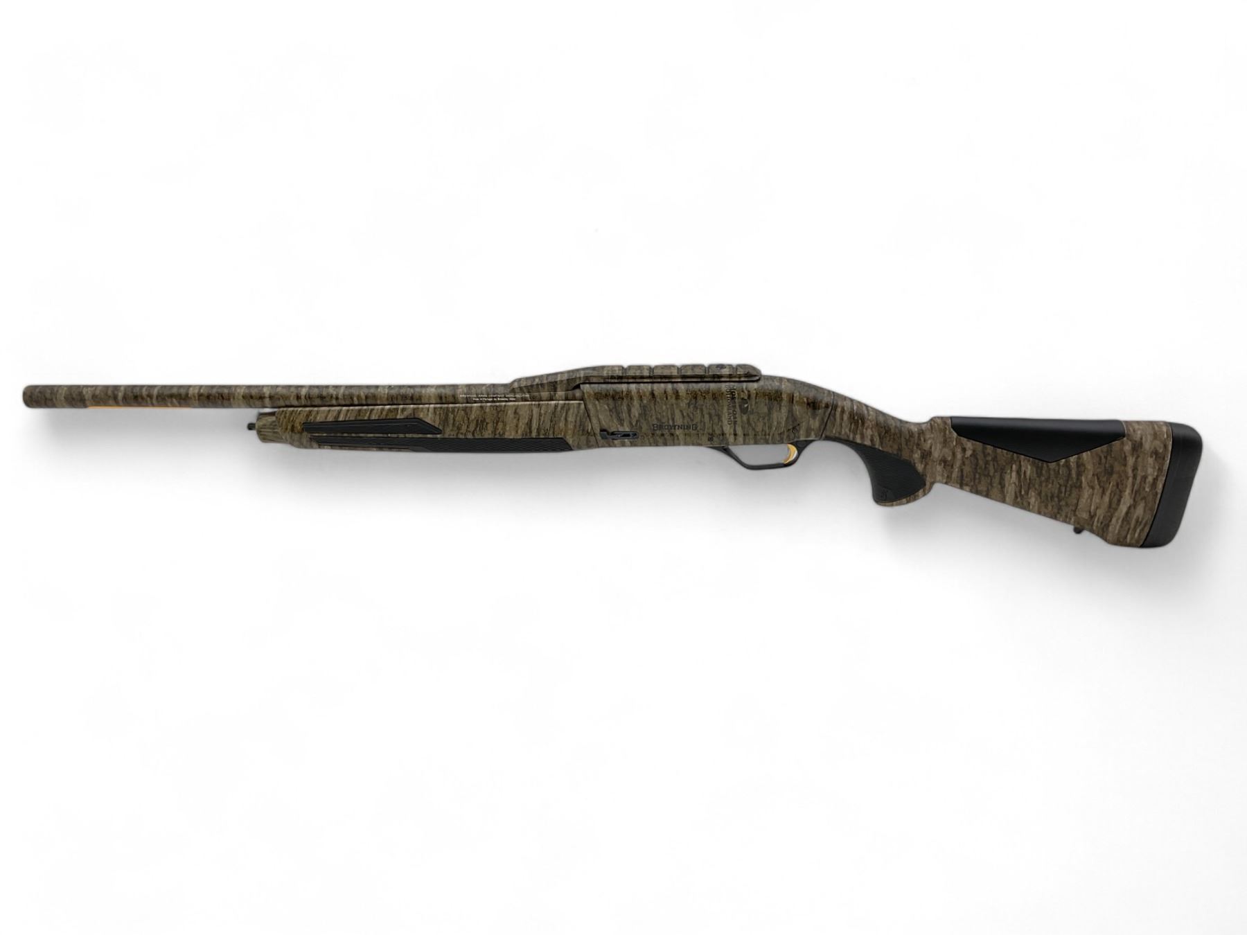 Browning Maxis II Rifled Deer Semi Auto Shotgun 12Ga 3" Chamber 22" Rifled Barrel MOB Camo, New. Cantilever mount. Comes with a plastic hard case. This is a non-restricted firearm.