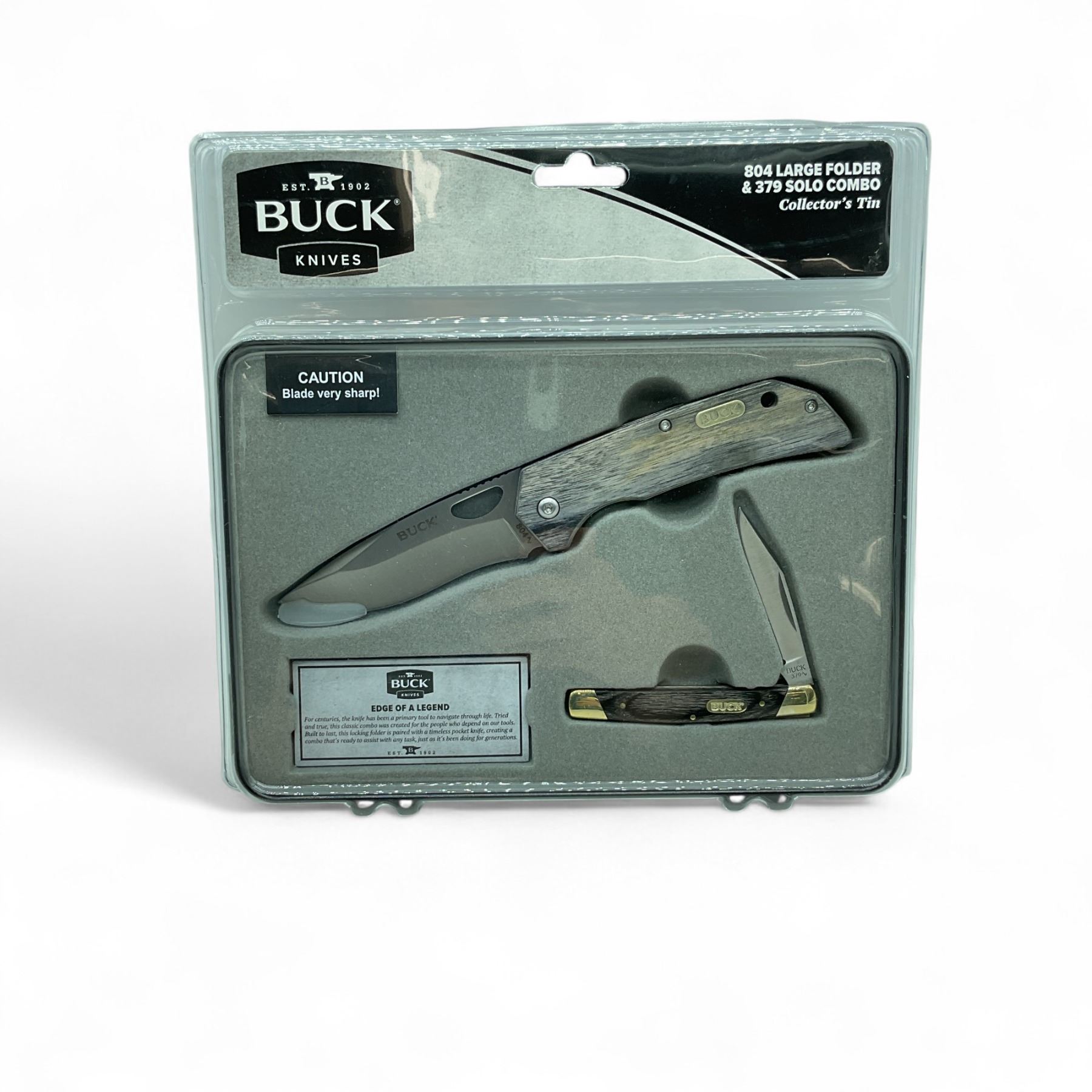 Buck Knives 804 Large Folder Knife and 379 Solo Knife Combo in Collectors Tin, New