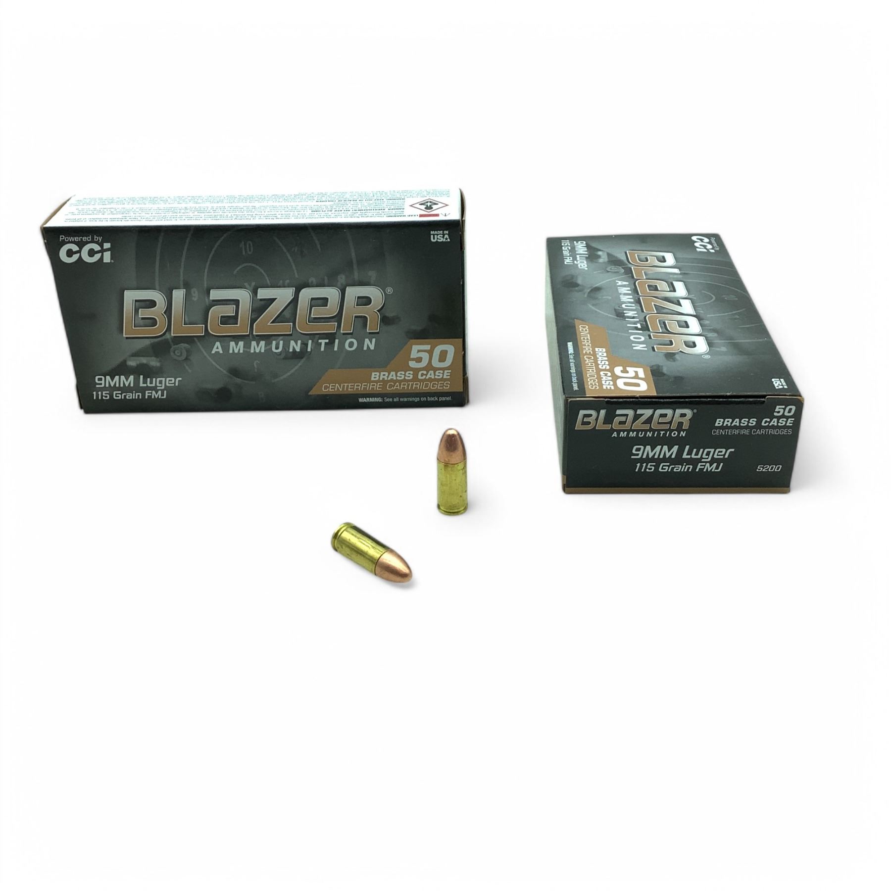 CCI Blazer 9mm Luger, 115 Grain FMJ Ammunition, 100 Rounds