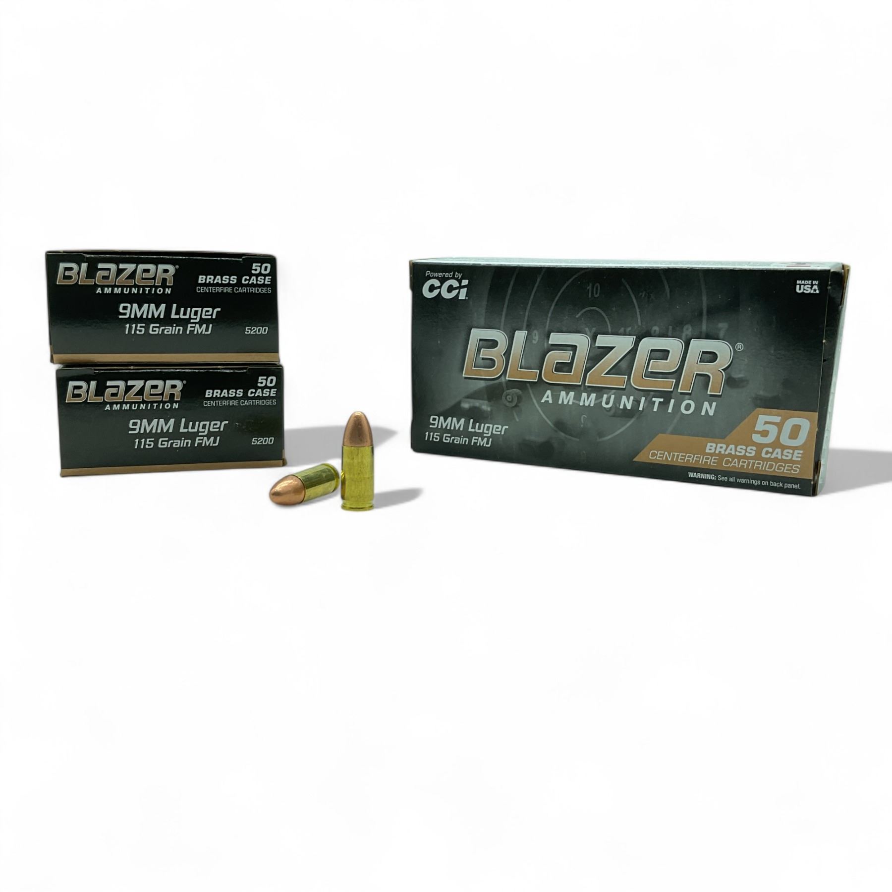 CCI Blazer 9mm Luger, 115 Grain FMJ Ammunition, 150 Rounds
