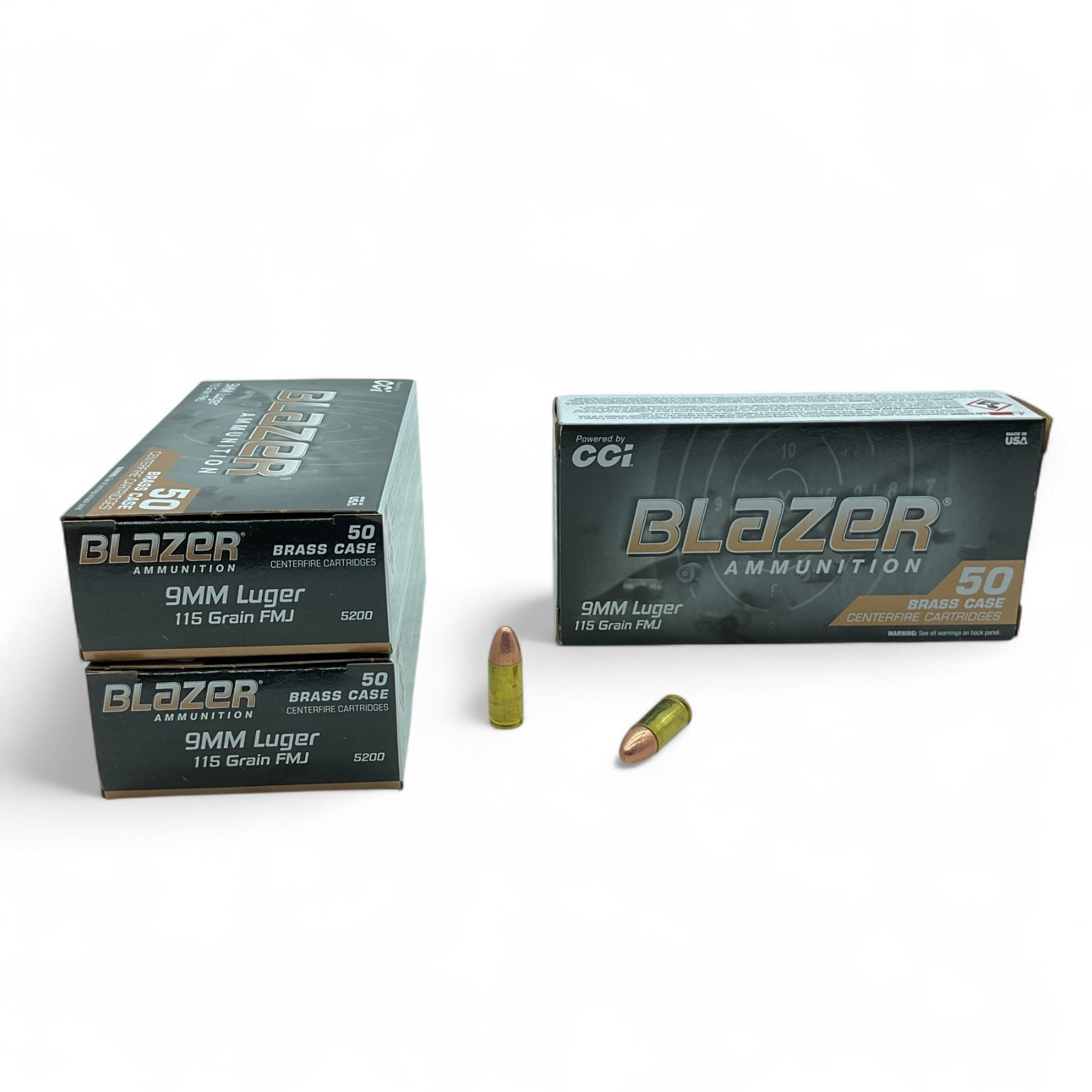 CCI Blazer 9mm Luger, 115 Grain FMJ Ammunition, 150 Rounds