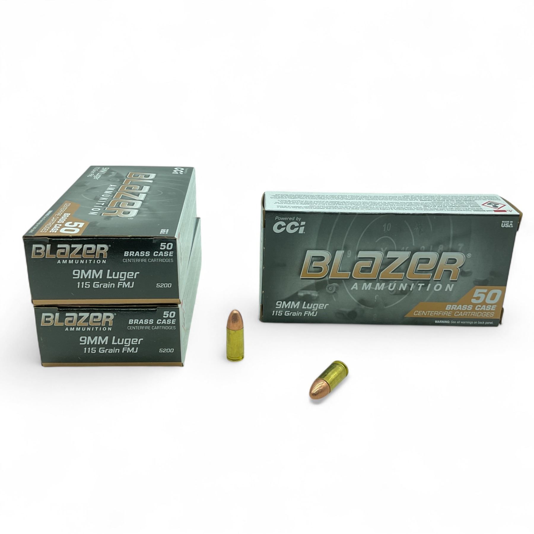CCI Blazer 9mm Luger, 115 Grain FMJ Ammunition, 150 Rounds