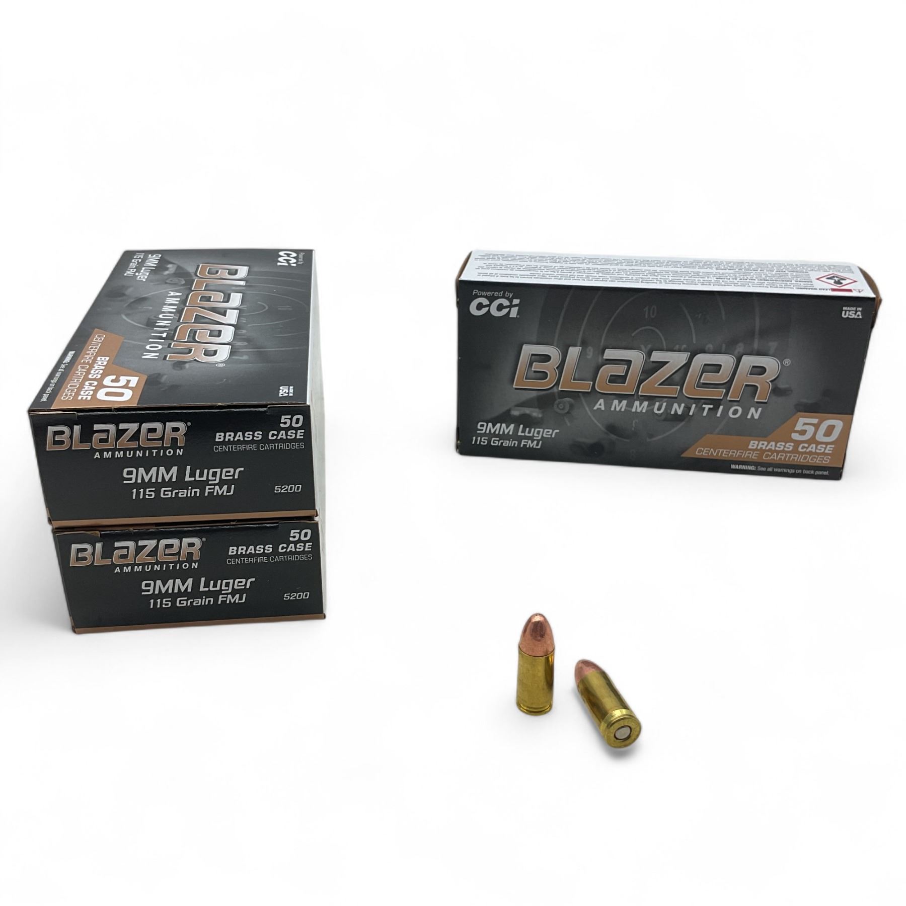 CCI Blazer 9mm Luger 115 Grain FMJ Ammunition, 150 Rounds