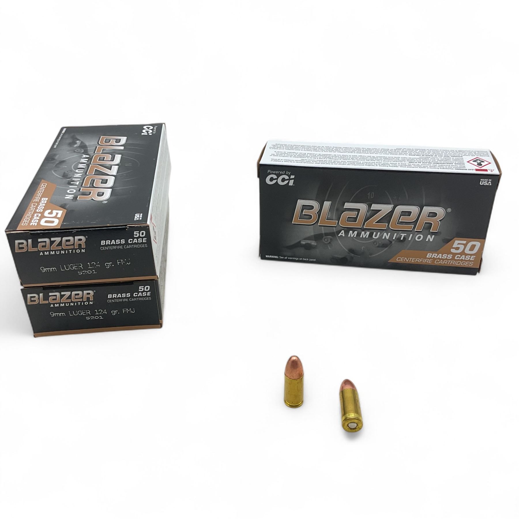 CCI Blazer 9mm Luger 124 Grain FMJ Ammunition, 150 Rounds