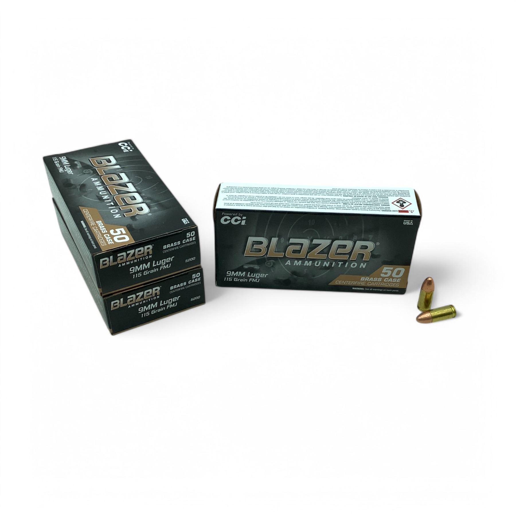 CCI Blazer Brass 9 mm 115 Grain FMJ Ammunition, 150 Rounds