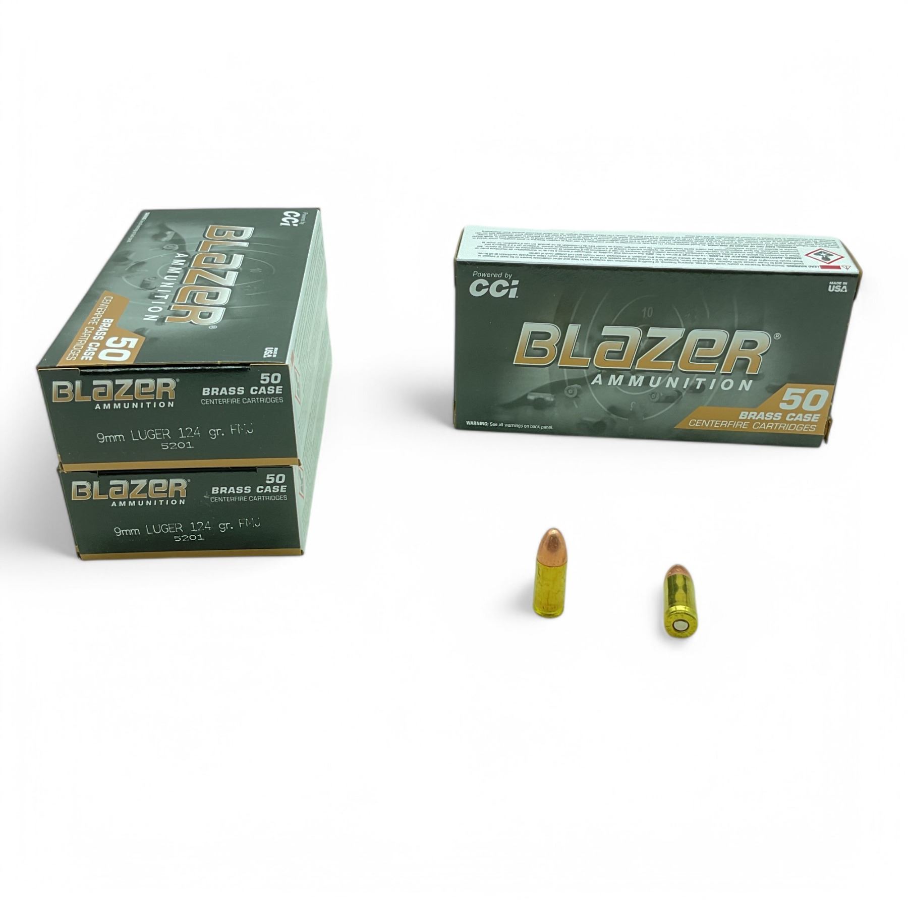 CCI Blazer Brass 9 mm 124 Grain FMJ Ammunition, 150 Rounds