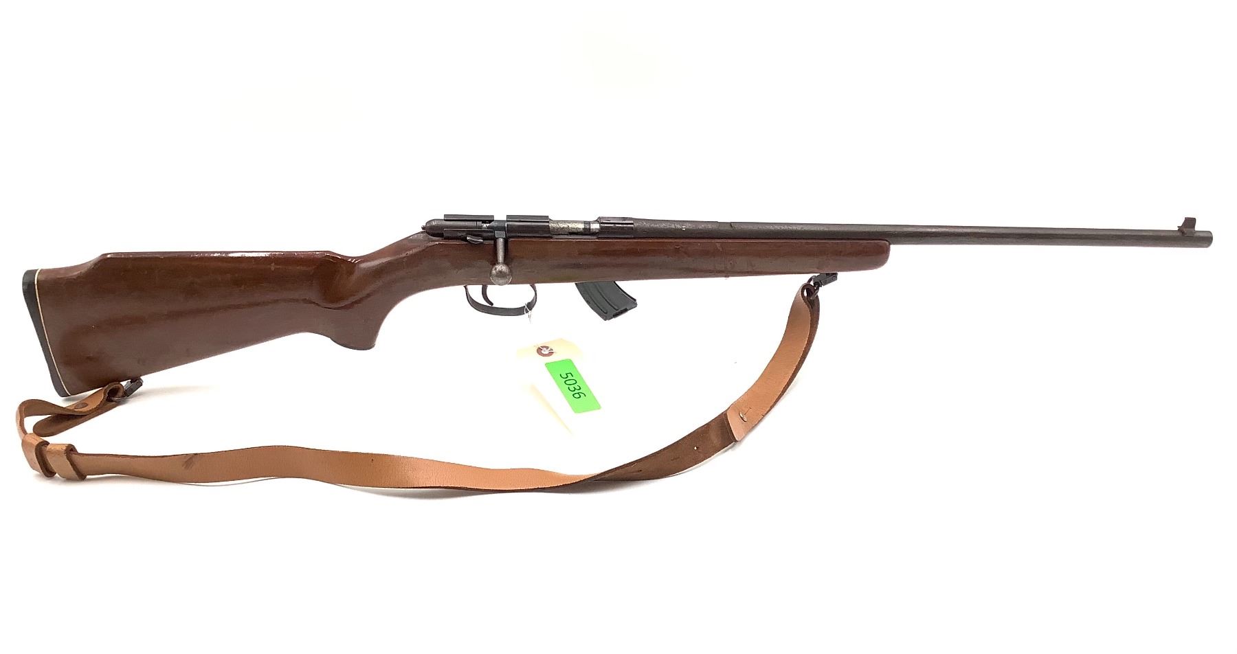 CIL Model 171 Bolt Action Rifle 22LR 21" Barrel Wood Stock. Detachable magazine. Includes leather sling, fixed front sight. Missing rear sight. Receiver grooved for scope mount. Finish worn and some rust present. This is a non-restricted firearm.