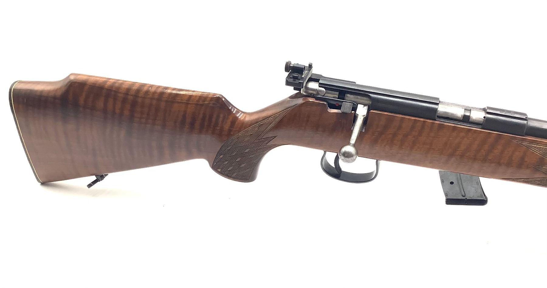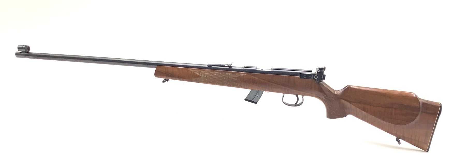 CIL Model 310 Bolt Action 22 LR Wood Stock. Detachable magazine, peep sights. This is a non-restricted firearm.