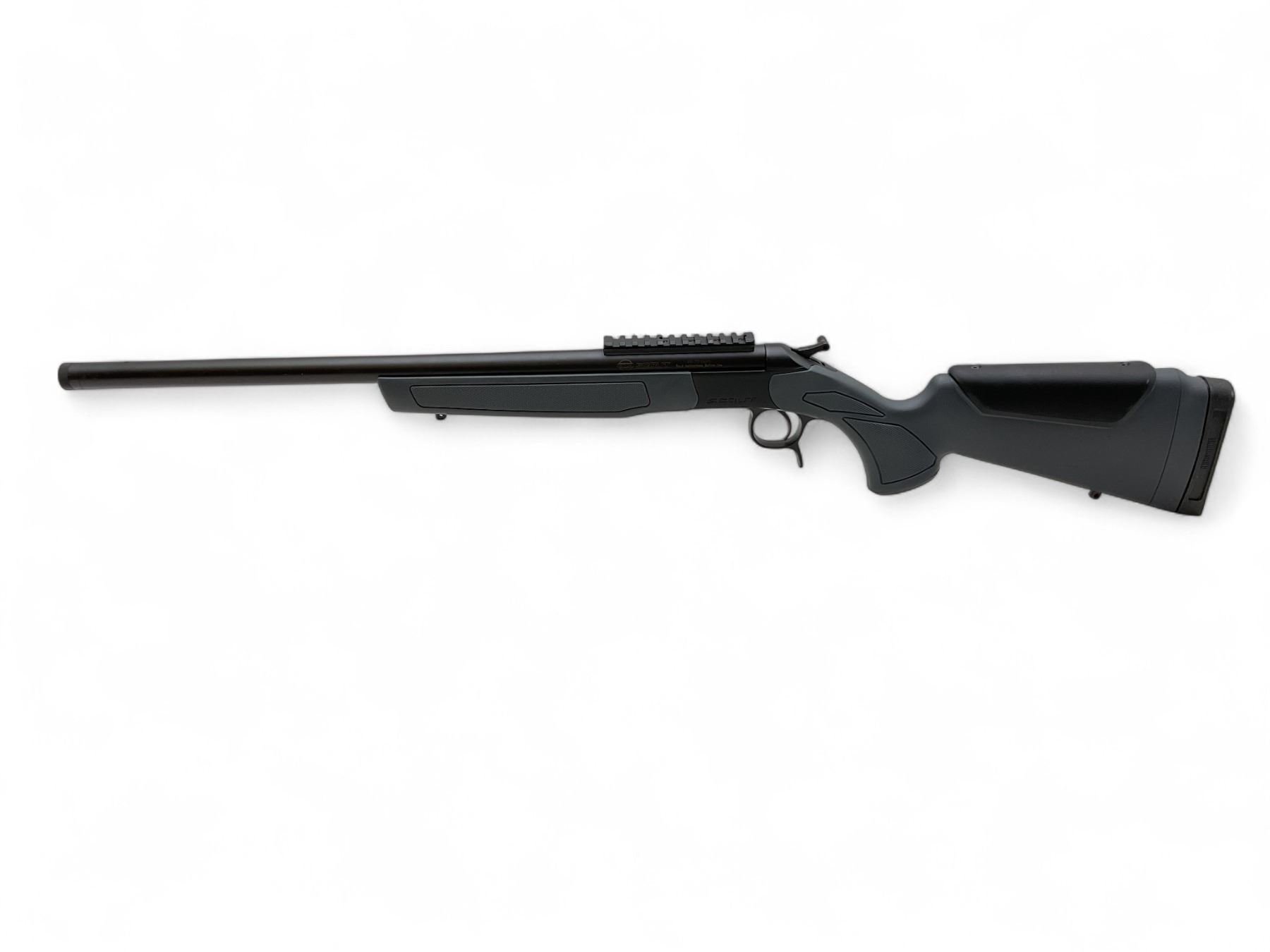 CVA Scout Single Shot Rifle 45-70 Govt 22" Threaded Barrel Black With Stealth Grey Synthetic Stock, New. One piece rail installed on barrel. This is a non-restricted firearm.