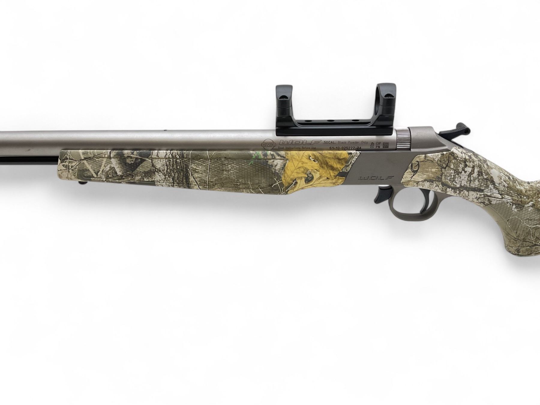 CVA Wolf V2 Stainless Muzzle Loader .50 Cal 24" Barrel Realtree Edge Camo, New. Barrel drilled and tapped with one piece mount installed. This is a non-restricted firearm.