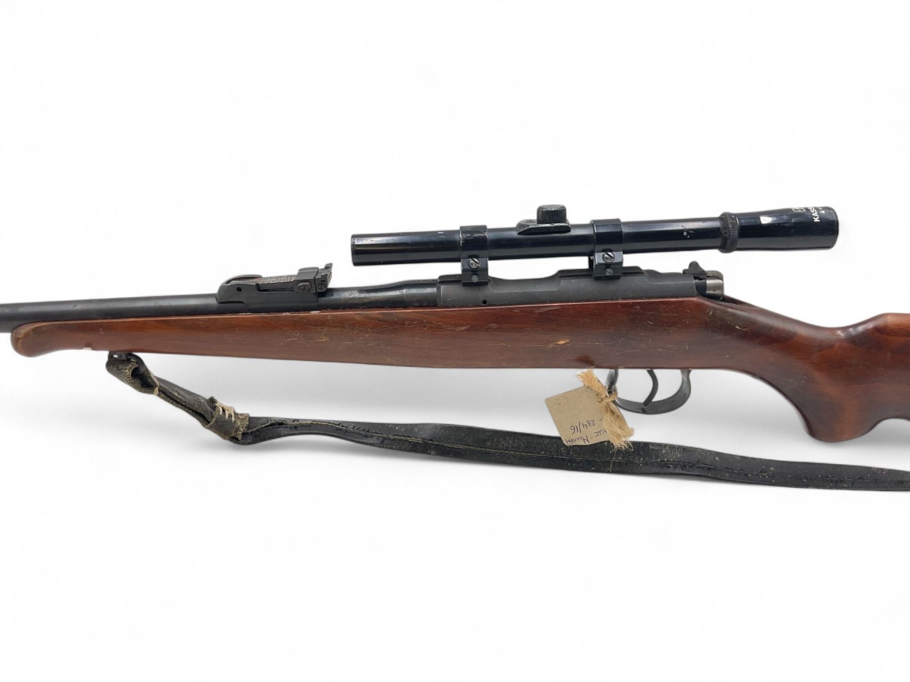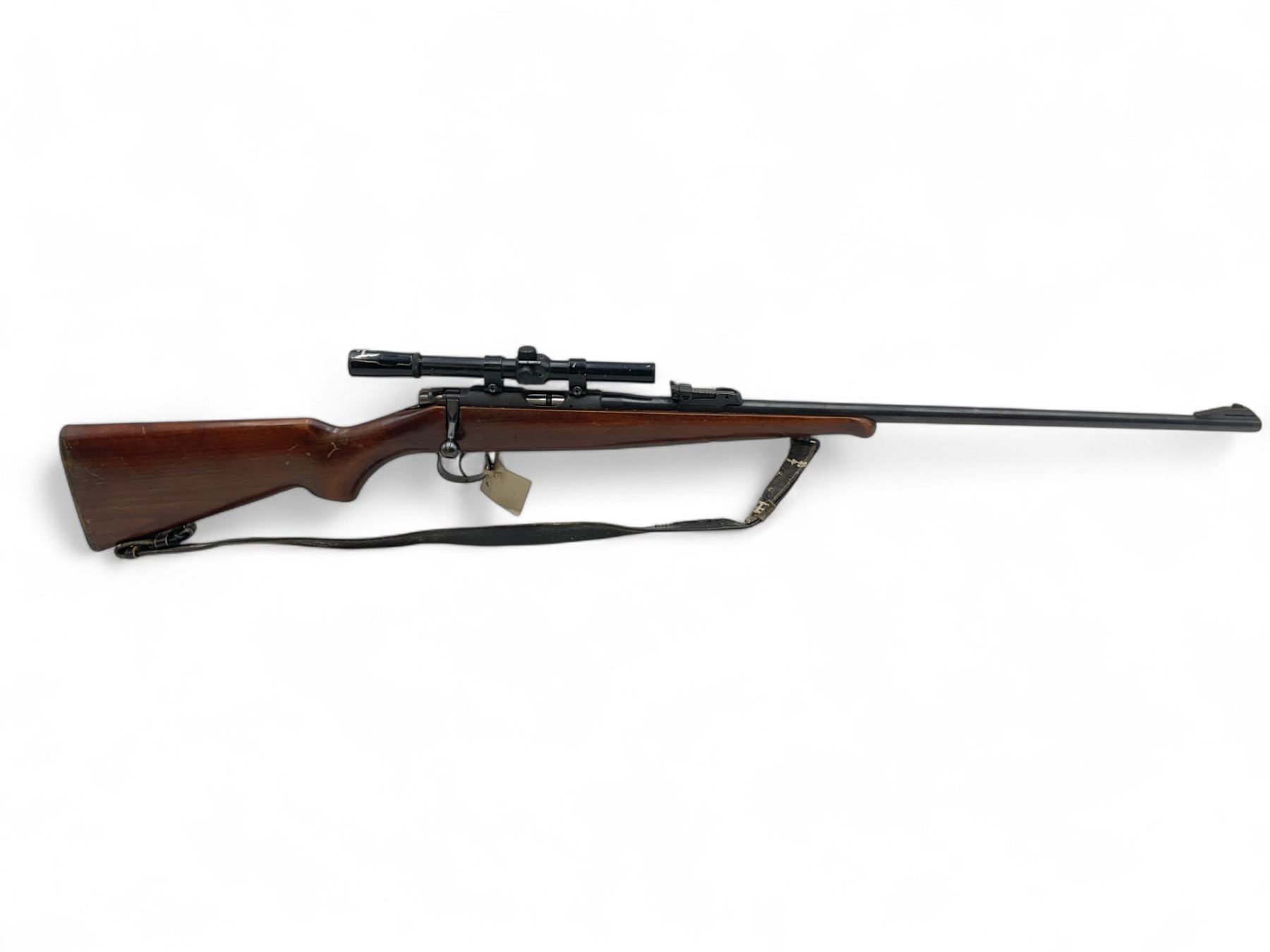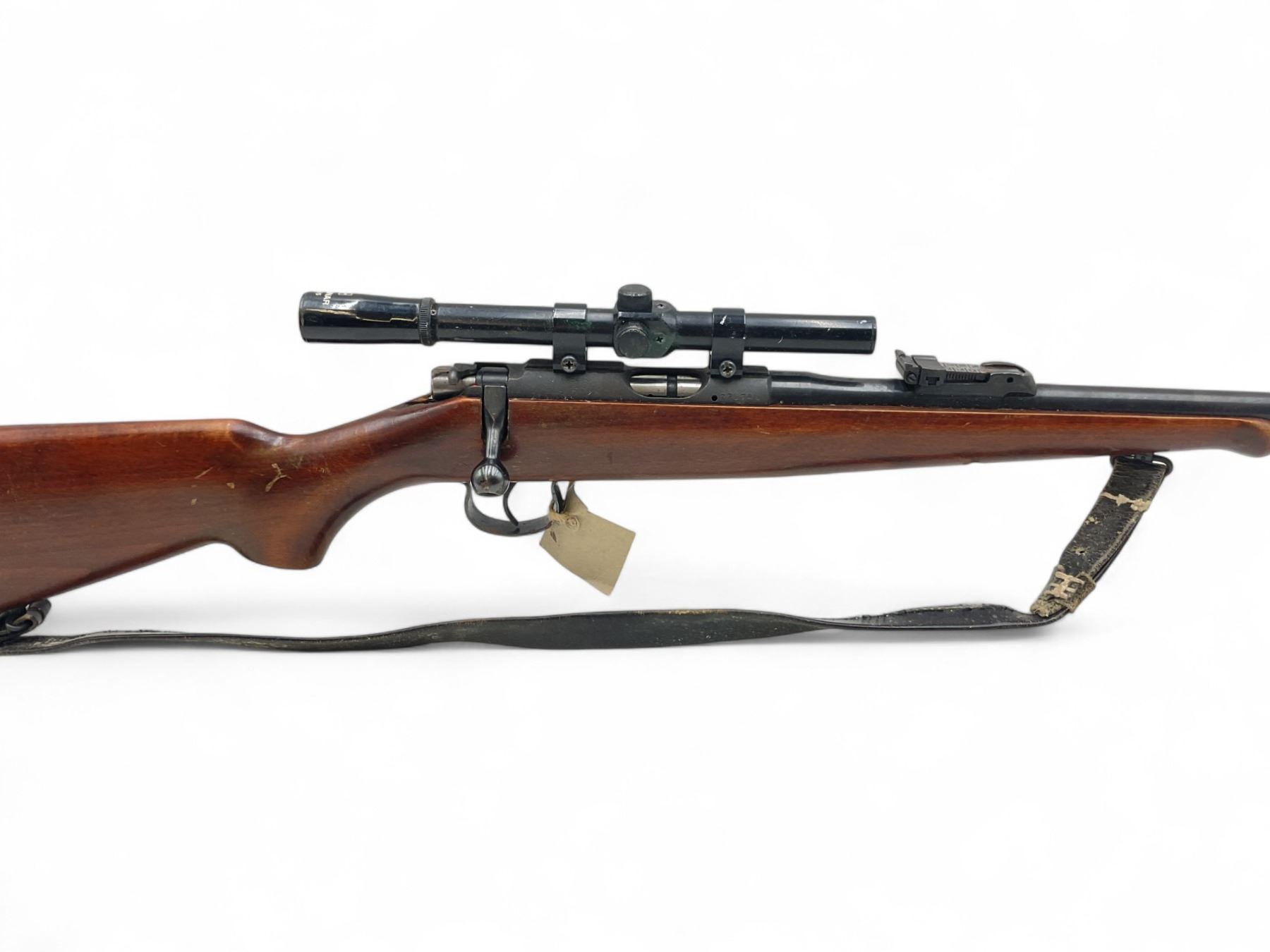 CZ BRNO Model 2 Bolt Action Rifle .22LR 24" Barrel Wood Stock With Marksman 4X15 Scope. No magazine included. Fixed front sight, adjustable rear sight. This is a non-restricted firearm.