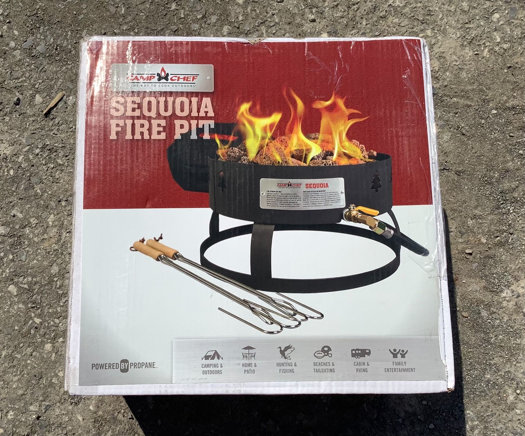 Enjoy the comfort of this 'forest friendly' portable gas campfire. Whether you're out on the road in the RV, car camping with the family or just enjoying a night out on the patio - this portable gas firepit is sure to keep you warm. Comes with base and high pressure burner, lava rock, two roasting sticks, and a carry bag. Gather around the campfire without worrying about smoke or having wood. Great for all types of activities. Tank sold separately. Camp Chef Gas Fire Pits are allowed for use in most fire ban restrictions, check with the local Ranger Station before use.