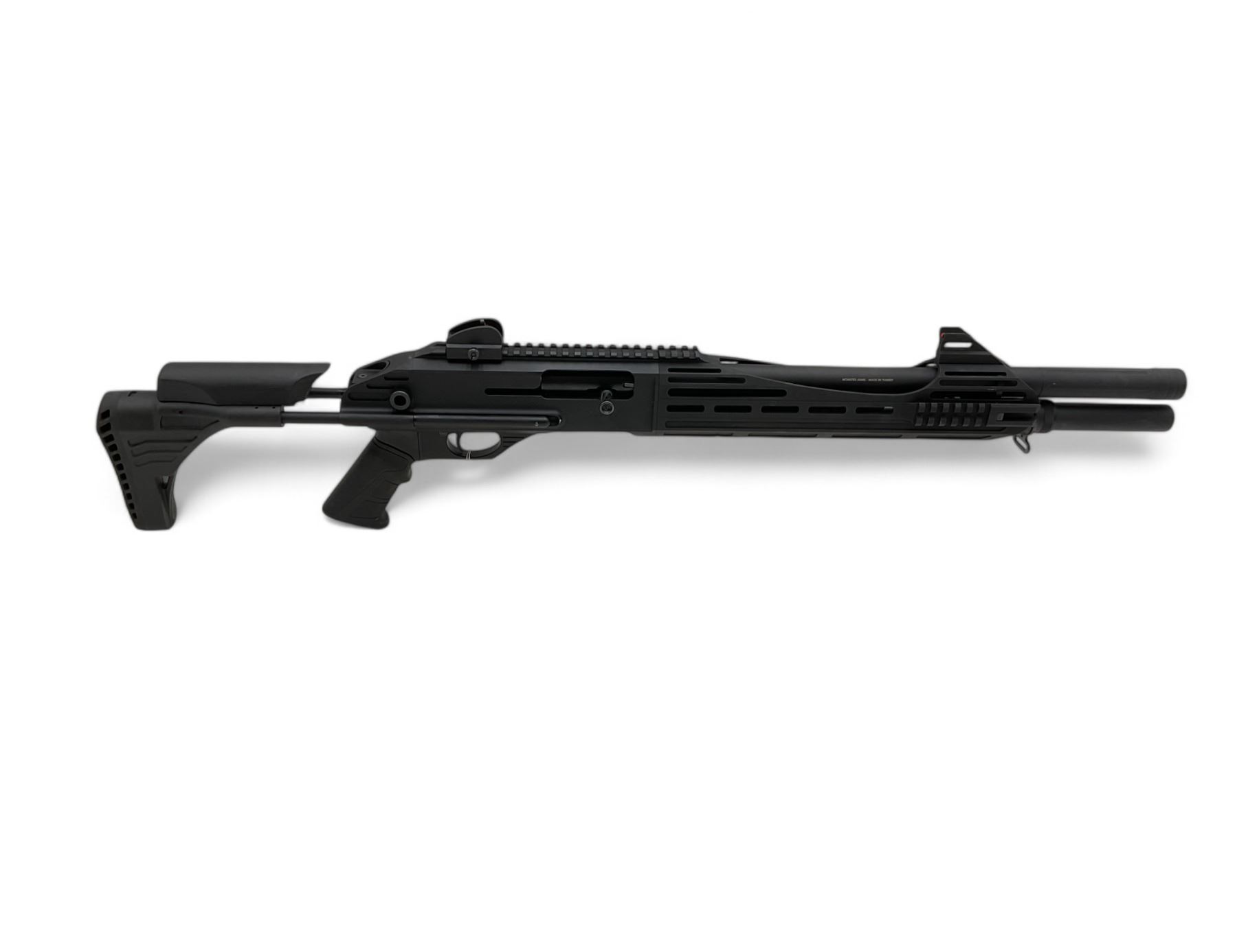 Canuck Engage Semi Auto Shotgun 12Ga 3" Chamber 18" Barrel Black Adjustable Stock. Fiber optic front sight, adjustable rear sight. Rail mounted on receiver. Comes with a removable choke. This is a non-restricted firearm.