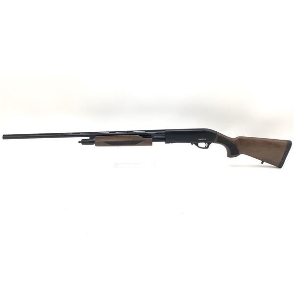 Canuck Hunter 410 Pump Action Shotgun 3" Chamber 26" Vent Rib Barrel Wood Stock, New. Comes with a removable choke. Bead front sight. This is a non restricted firearm.