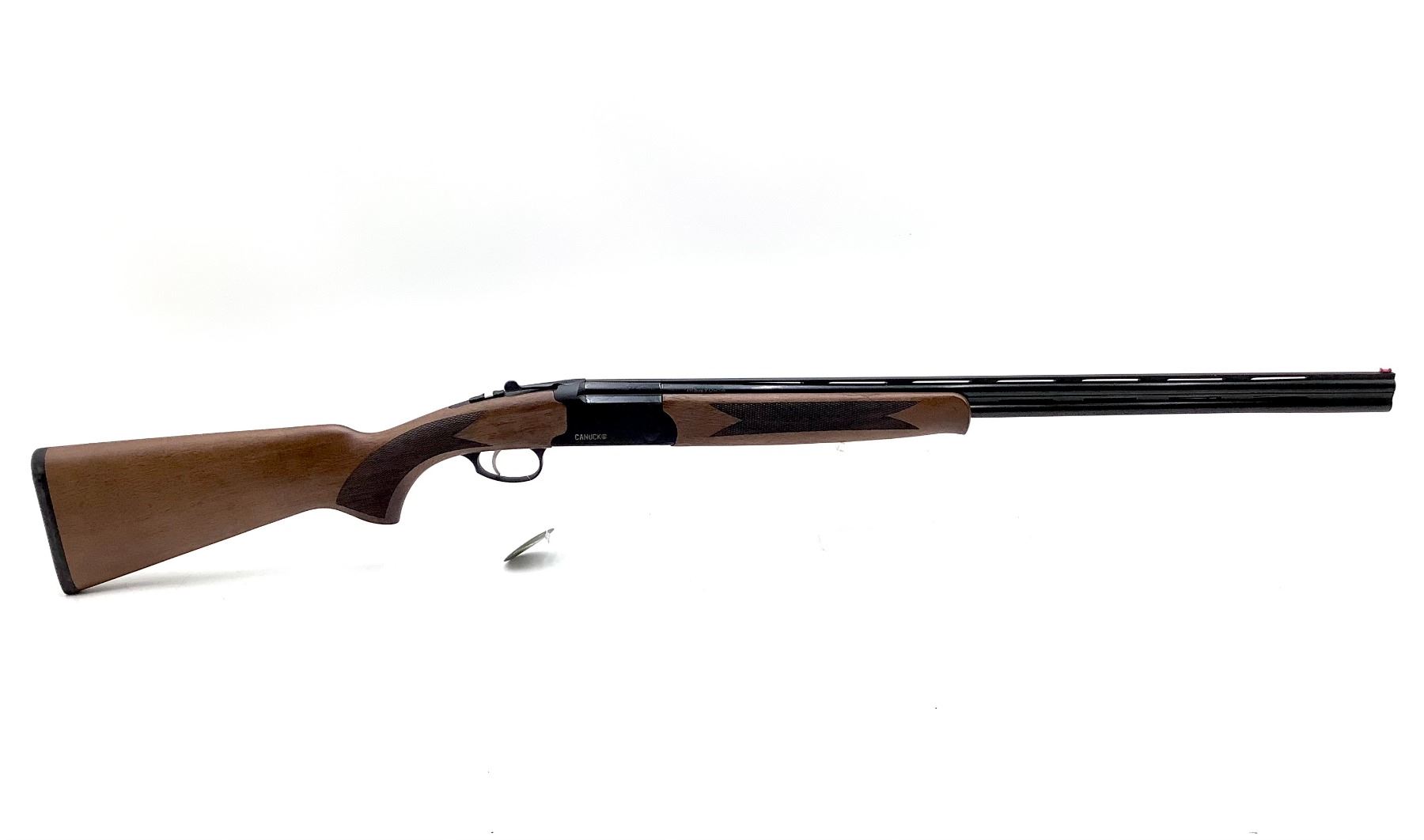 Canuck Over Under 410 Shotgun 3" Chambers 26" Barrels Wood Stock, New. Vent rib, fiber optic front sight. Comes with interchangeable chokes. This is a non-restricted firearm.