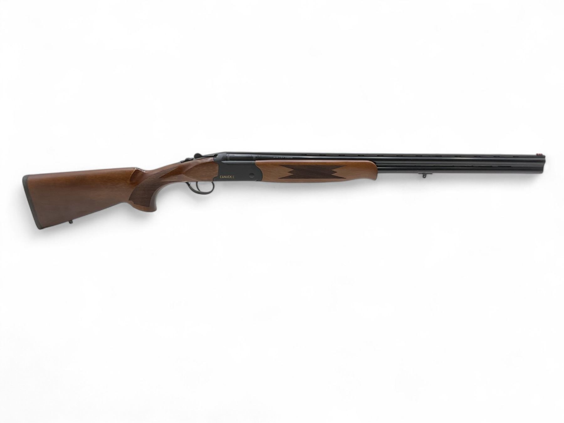 Canuck Over Under Shotgun 28Ga 2.75" Chambers 26" Barrels Wood Stock, New. Vent rib with fiberoptic sight; each barrel comes with removable choke. This is a non-restricted firearm.