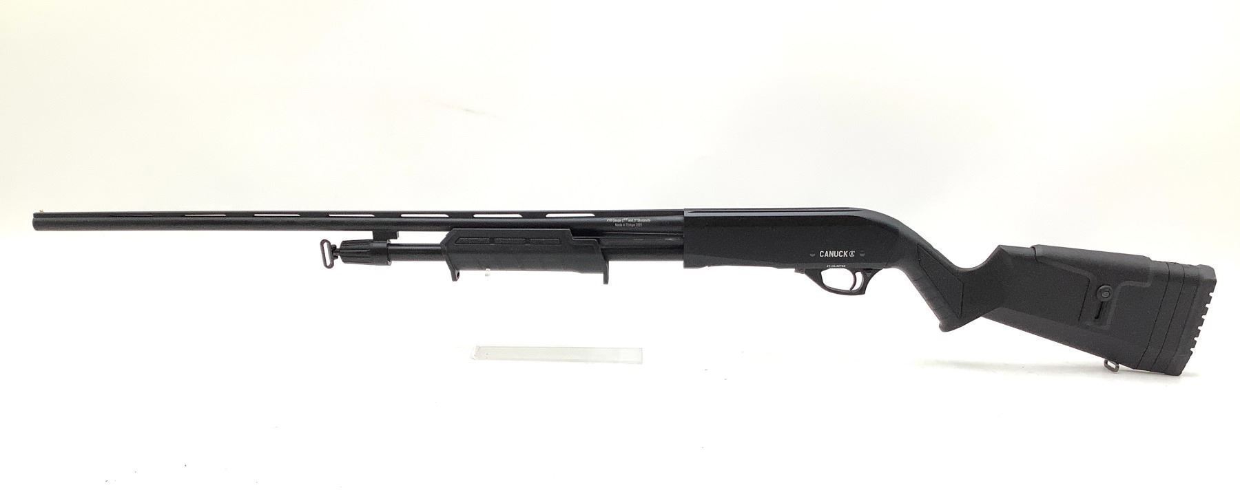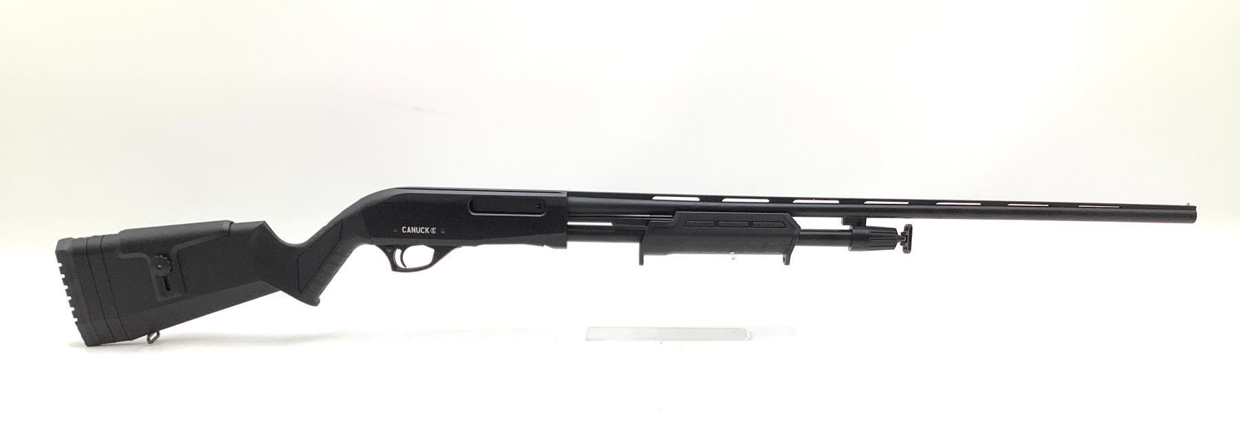 Canuck Pump Action 410 Shotgun 26" Barrel Black Synthetic Stock, New. Bead sight, removable choke. This is a non-restricted firearm.