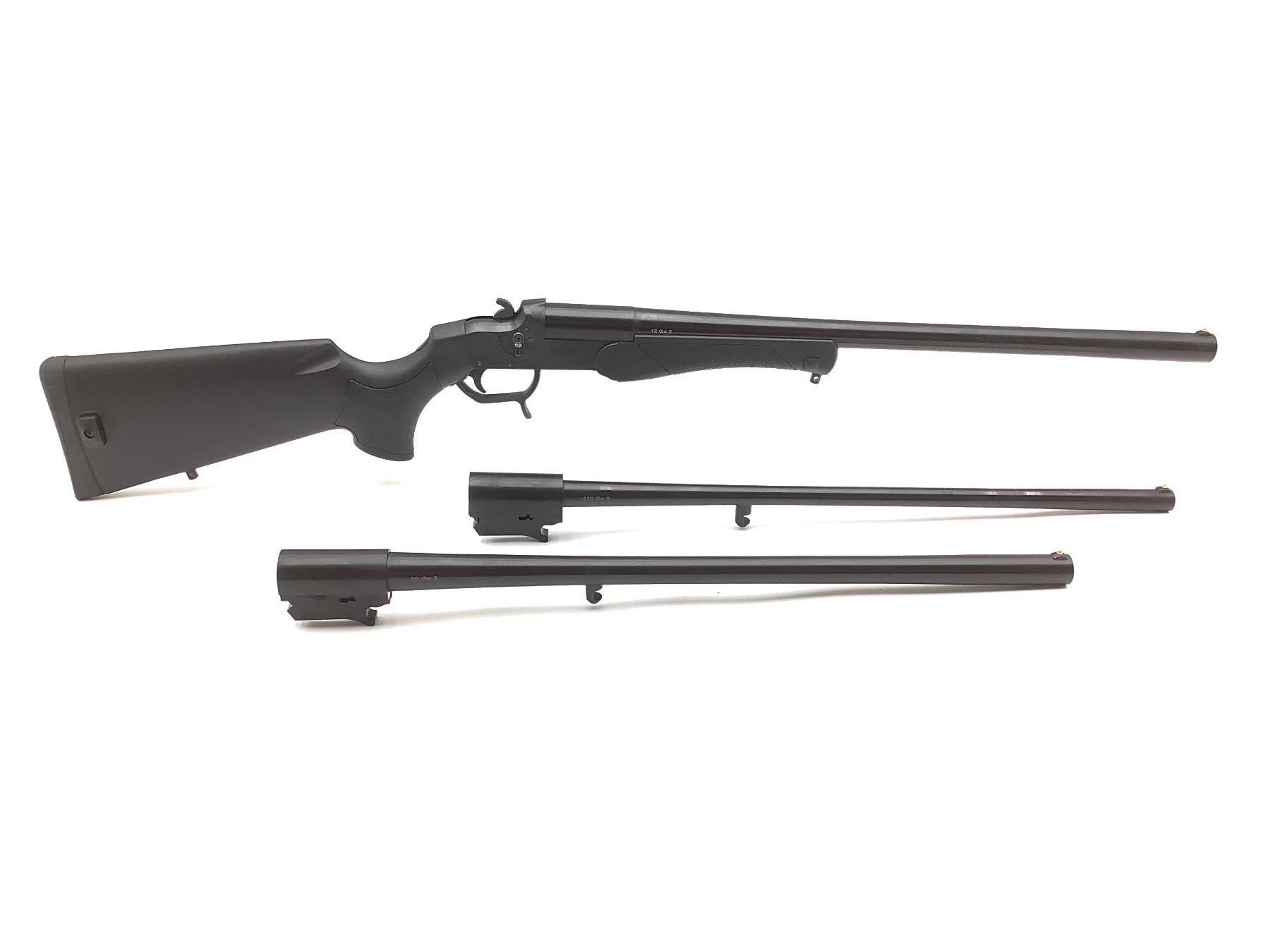 Canuck Solo Single Shot Shotgun 12Ga/20Ga/410 Combo 20" Barrels, New. Includes three barrels. Each barrel has a removable choke. This is a non-restricted firearm.