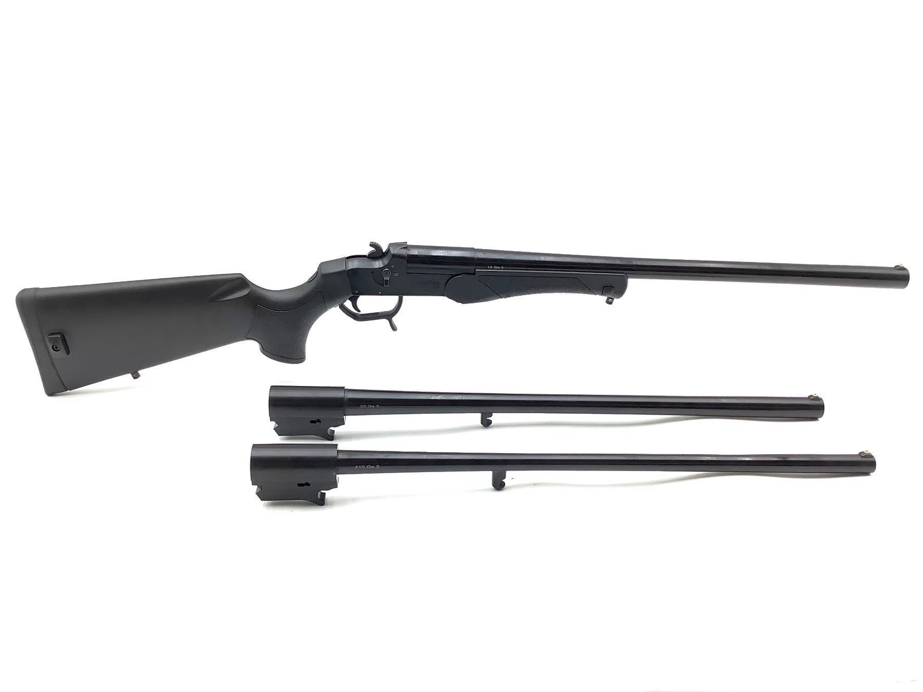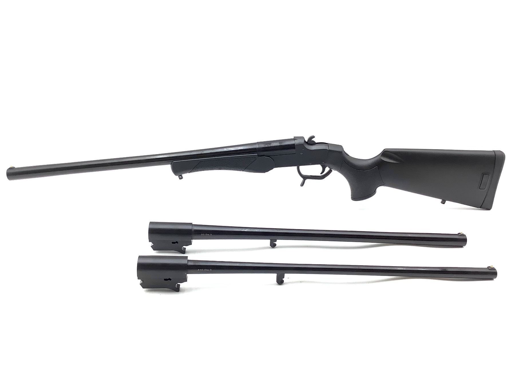Canuck Solo Single Shot Shotgun 12Ga/20Ga/410Ga Combo 20" Barrels, New. Includes three separate barrels and interchangeable chokes. This is a non-restricted firearm.