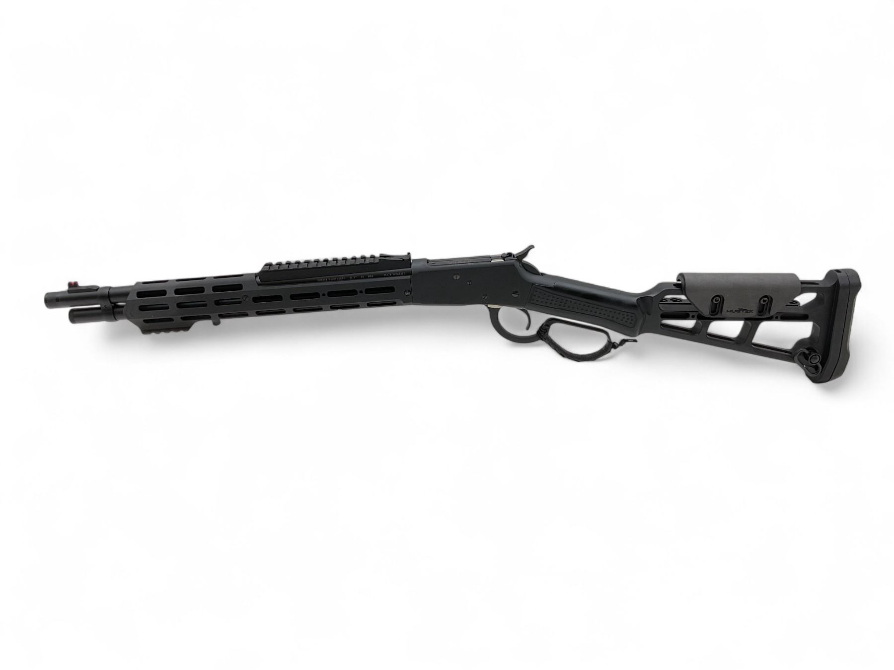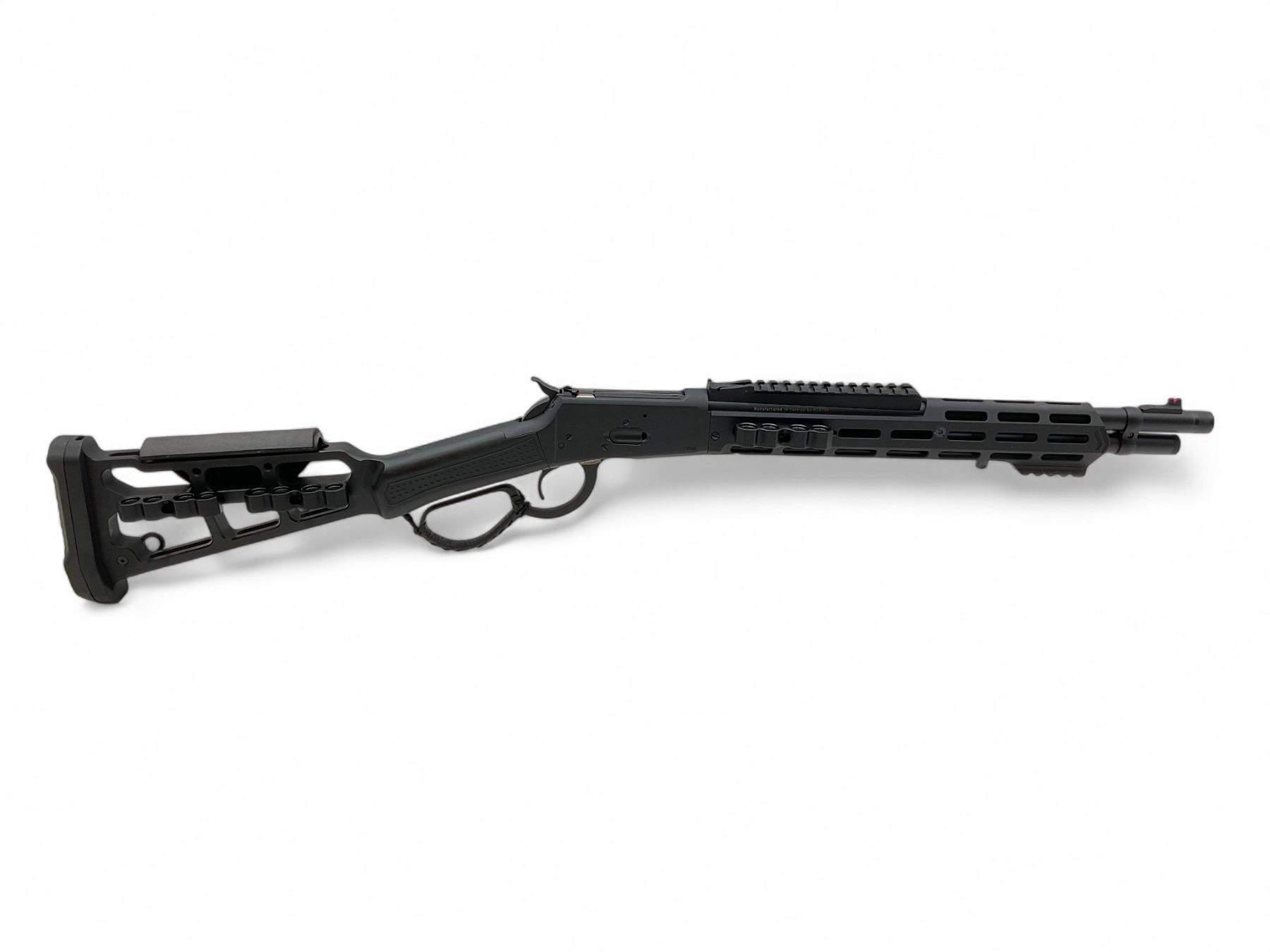 Canuck Wrangler Blackout Lever Action Rifle .44 Magnum 16.5" Threaded Barrel Skeletal Stock, New. Tubular magazine; comes with built in shell holders on stock. This is a non-restricted firearm.