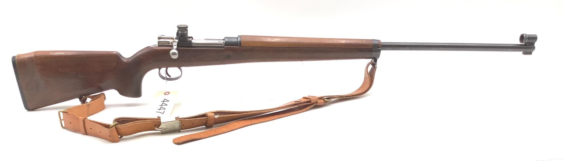 Carl Gustafs CG63 Target Bolt-Action 6.5X55 30" Barrel, Wood Stock. Adjustable peep sights, Sling, Stock has marks.