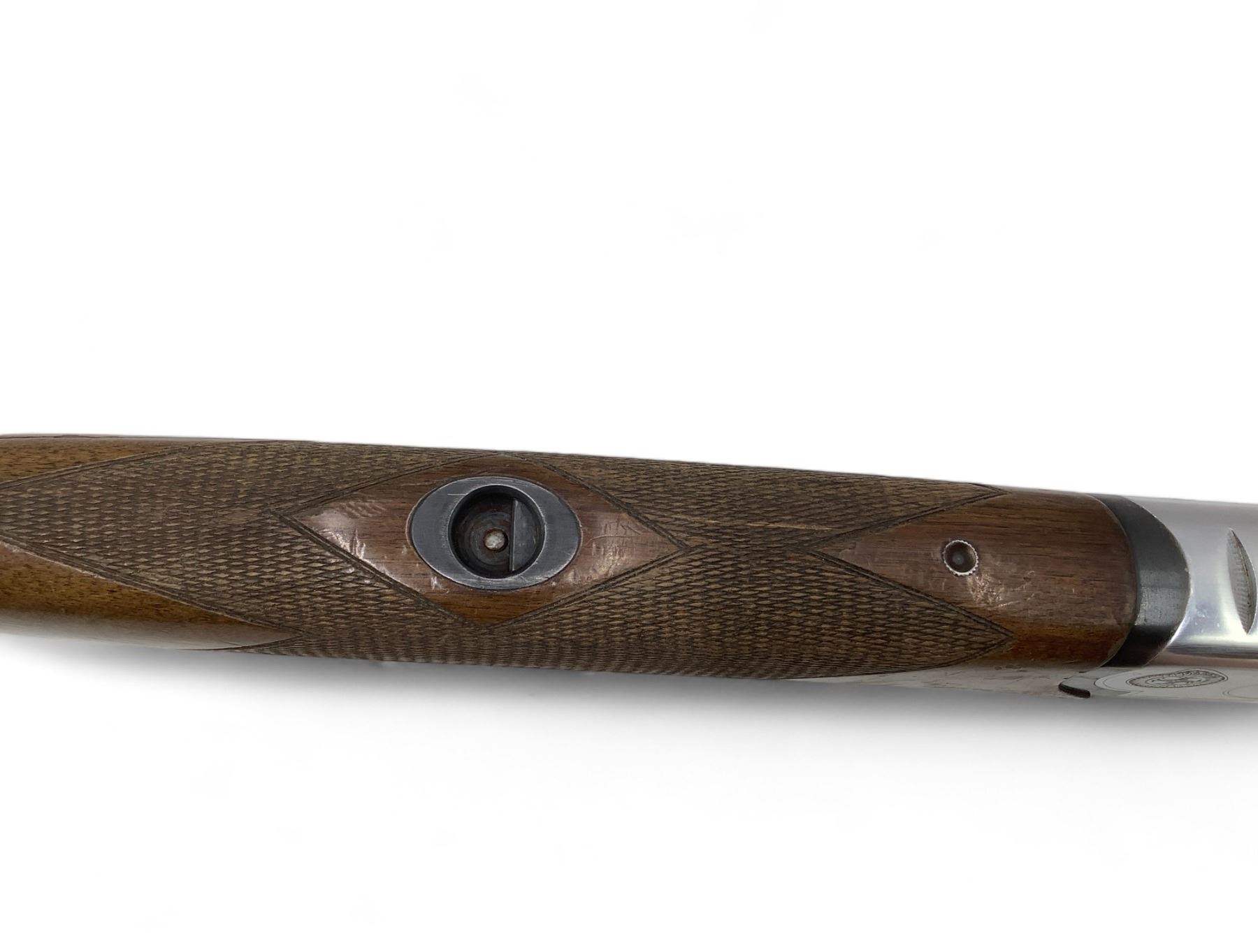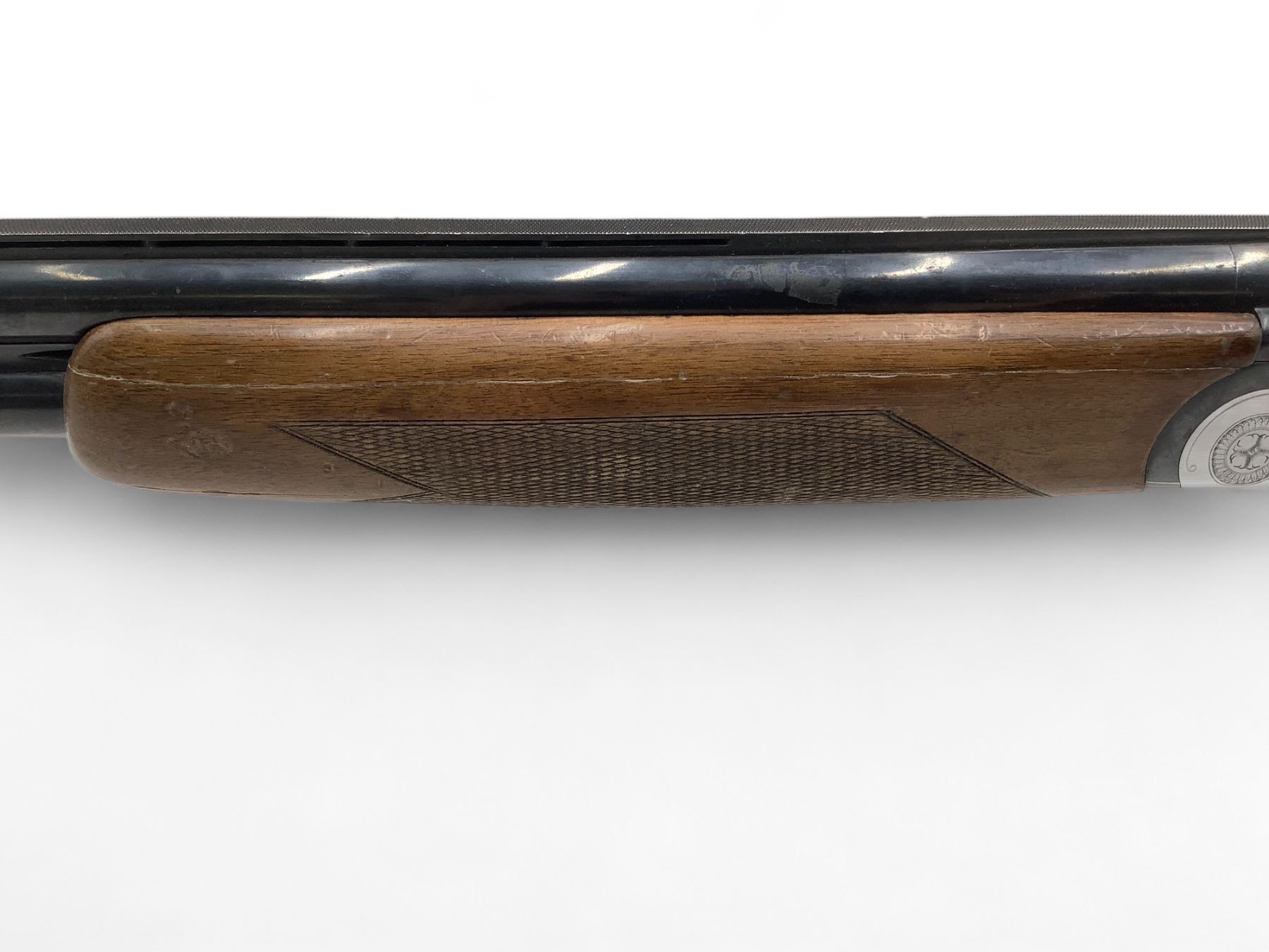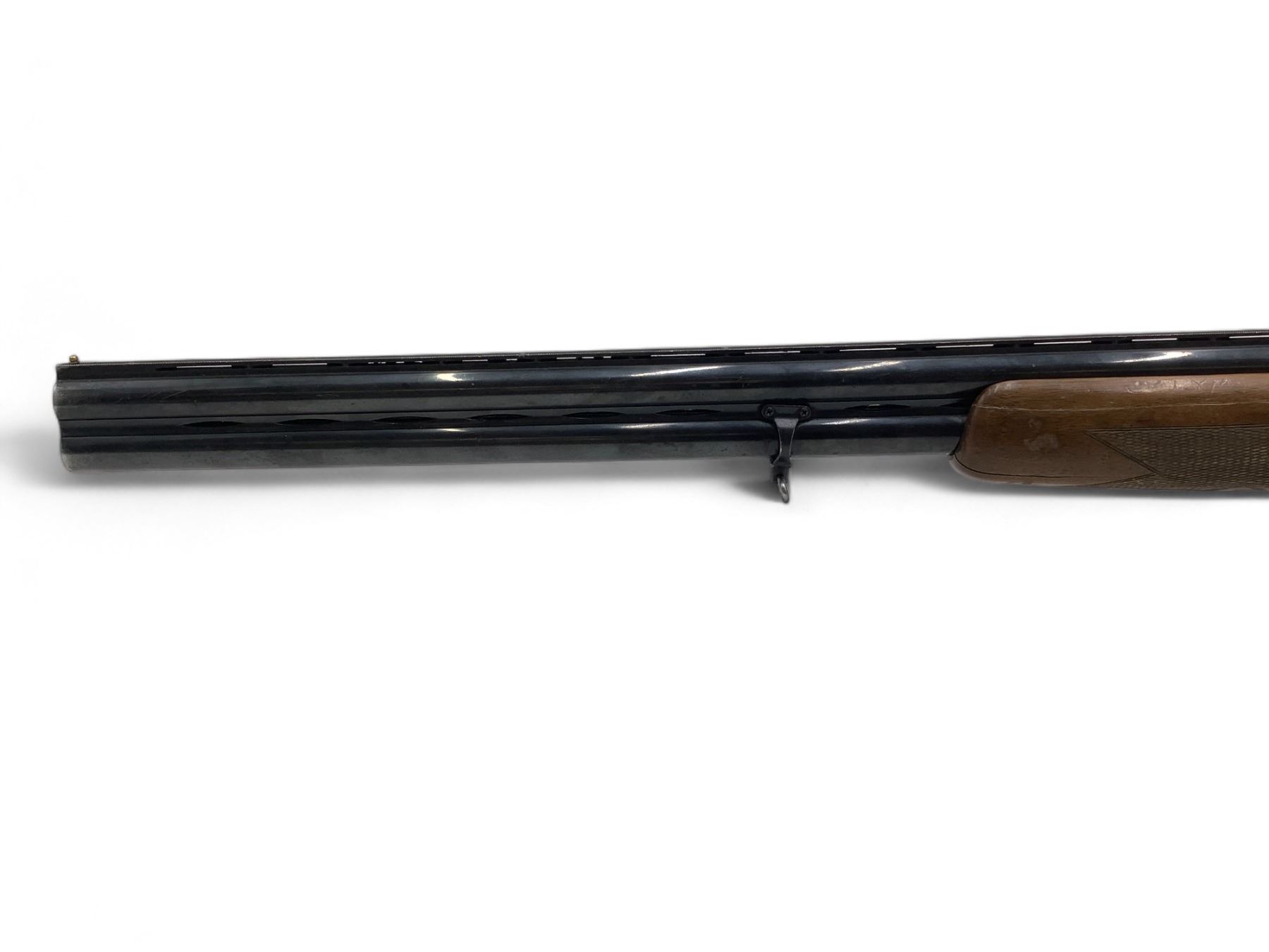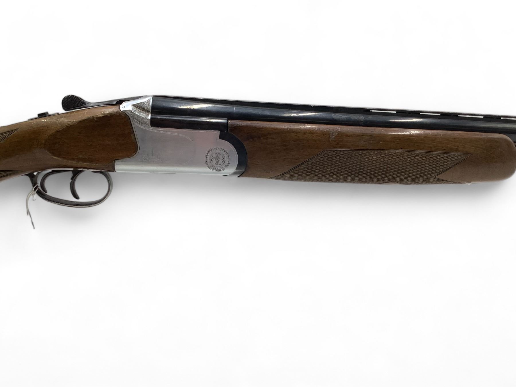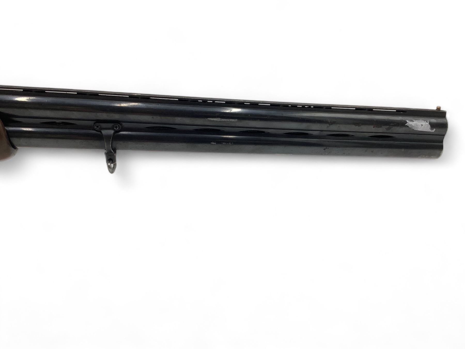Castellani Over Under Shotgun 12Ga 27.5" Barrels Wood Stock. Vent rib with bead sight, fixed chokes. Double triggers. This is a non-restricted firearm.