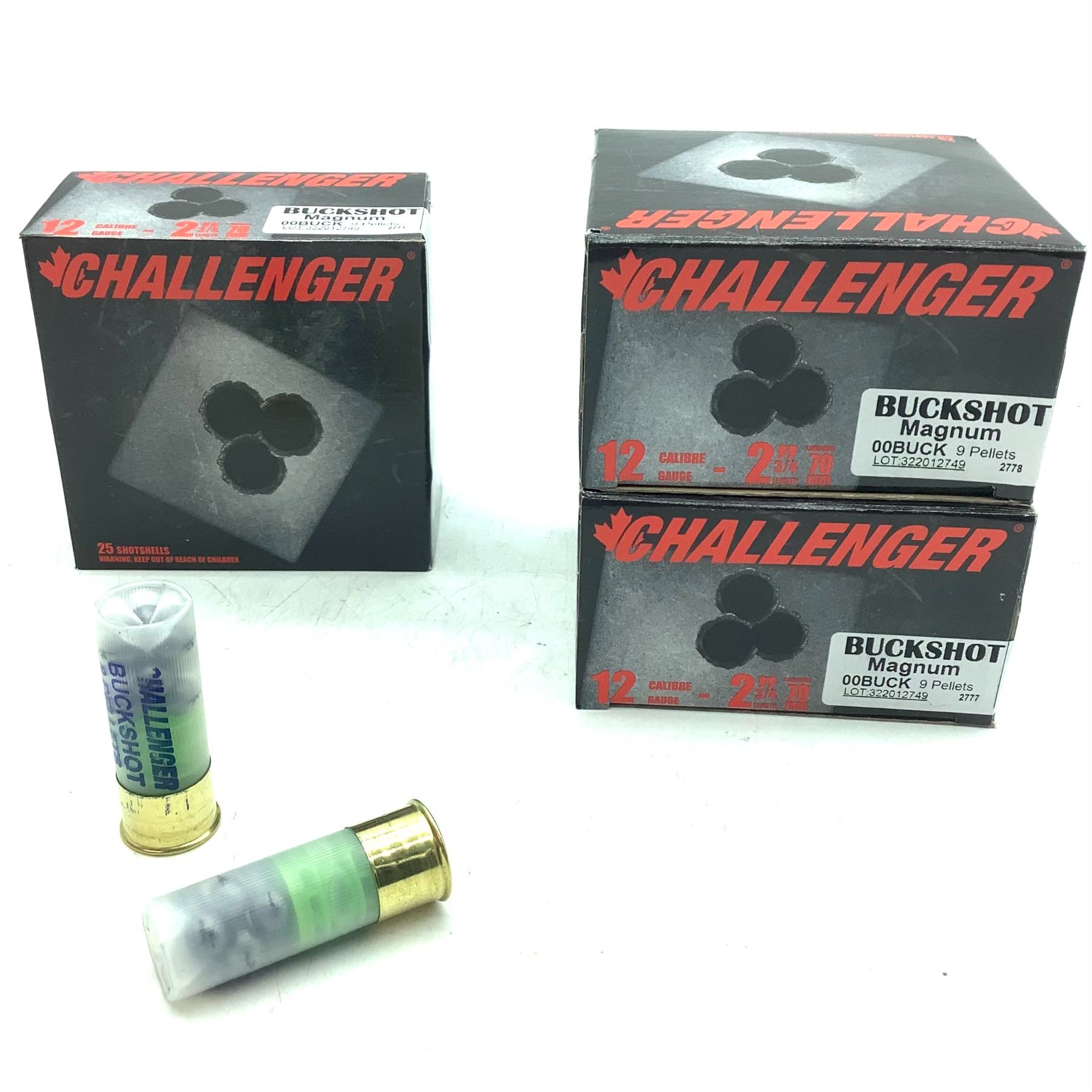 Challenger 12 Ga 2 3/4" Buckshot Magnum 00 Buck Ammunition, 75 Rounds