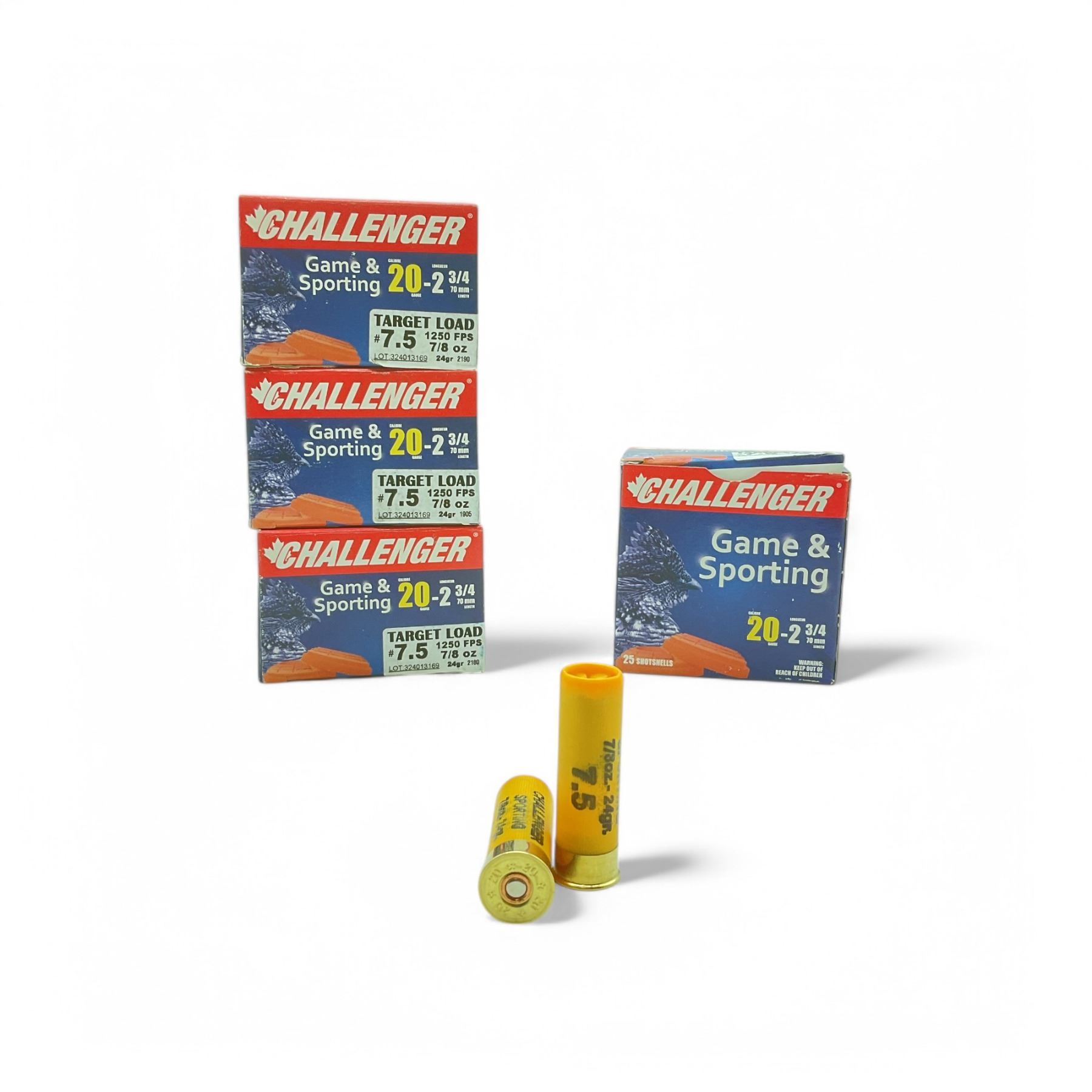 Challenger Game and Sporting 20 Ga, 2-3/4", #7.5 Shot Ammunition, 100 Rounds