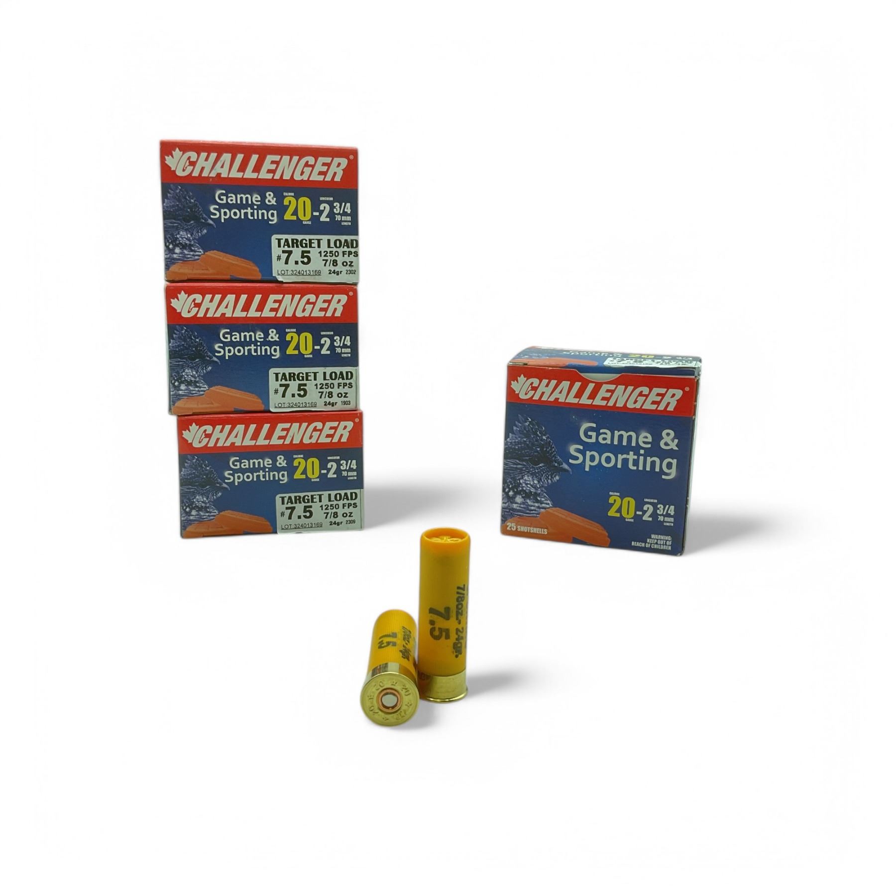 Challenger Game and Sporting 20 Ga, 2-3/4", #7.5 Shot Ammunition, 100 Rounds