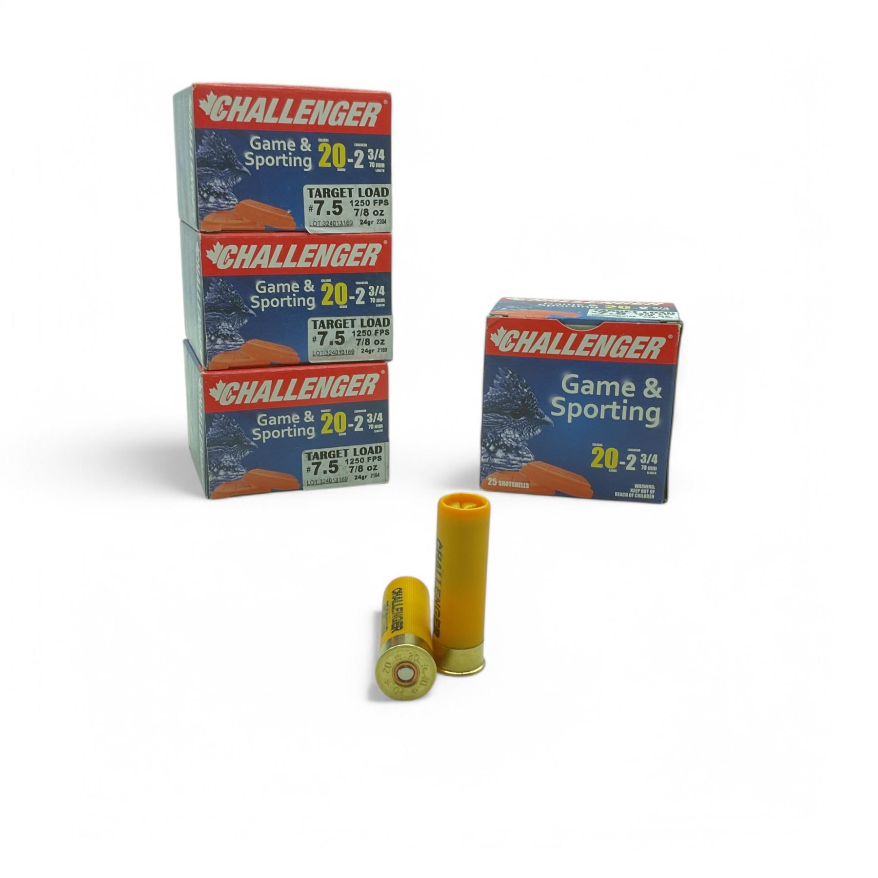 Challenger Game and Sporting 20 Ga, 2-3/4", #7.5 Shot Ammunition, 100 Rounds
