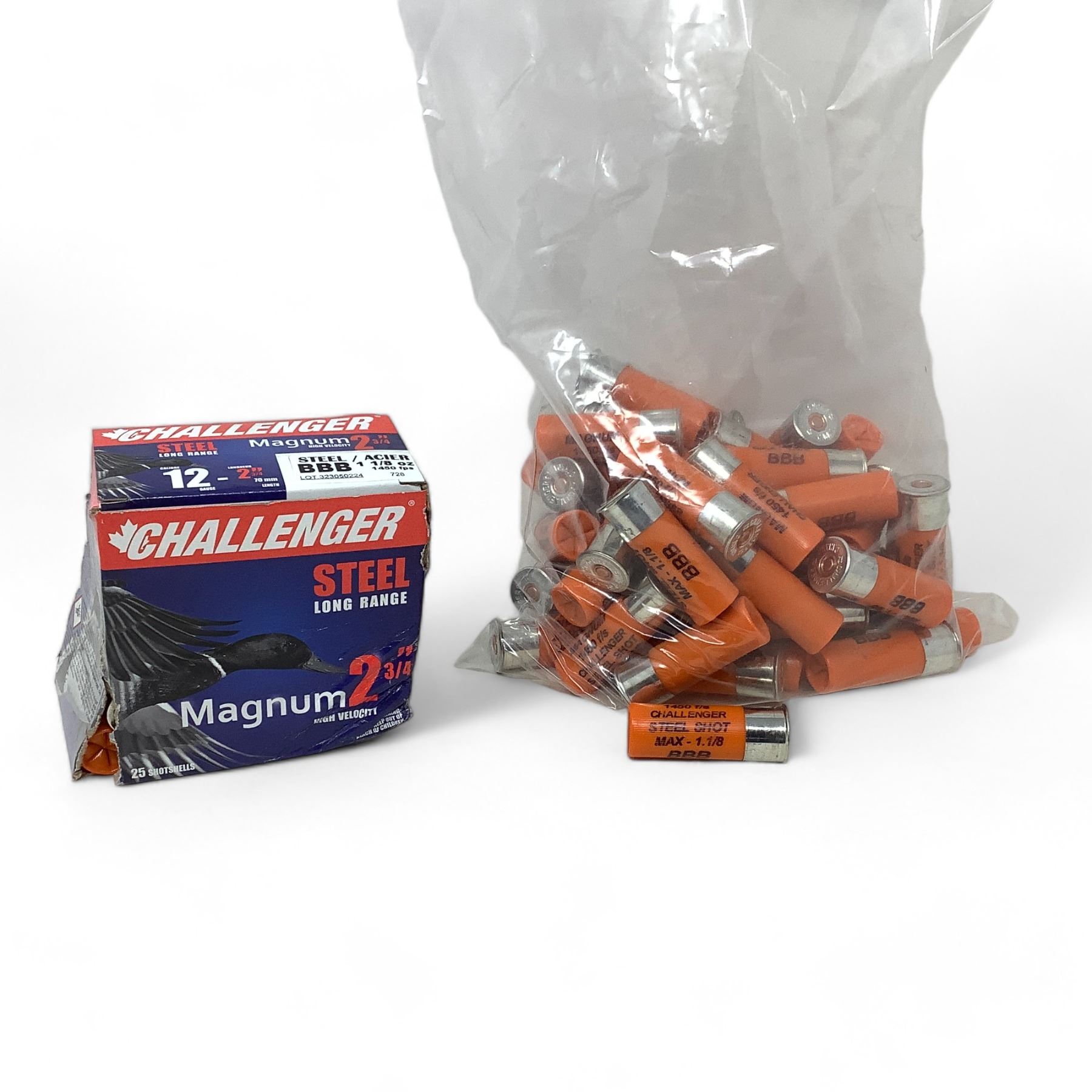 Challenger Steel Long Range 12 Ga Magnum 2 3/4" HV BBB Ammunition, 75 Rounds