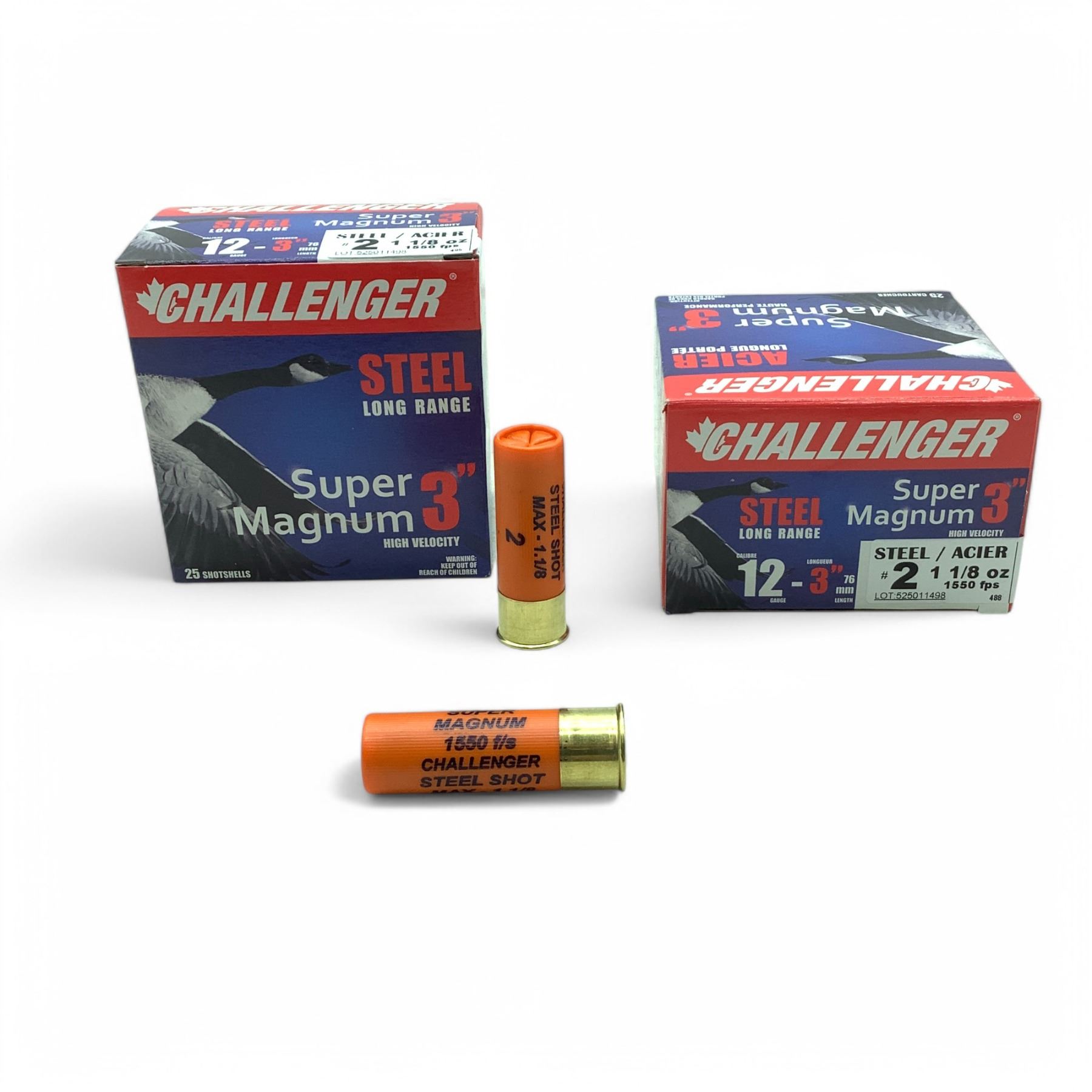Challenger Super Magnum 12 Ga, 3", 1-1/8 oz, #2 Shot Long Range Steel Ammunition, 50 Rounds