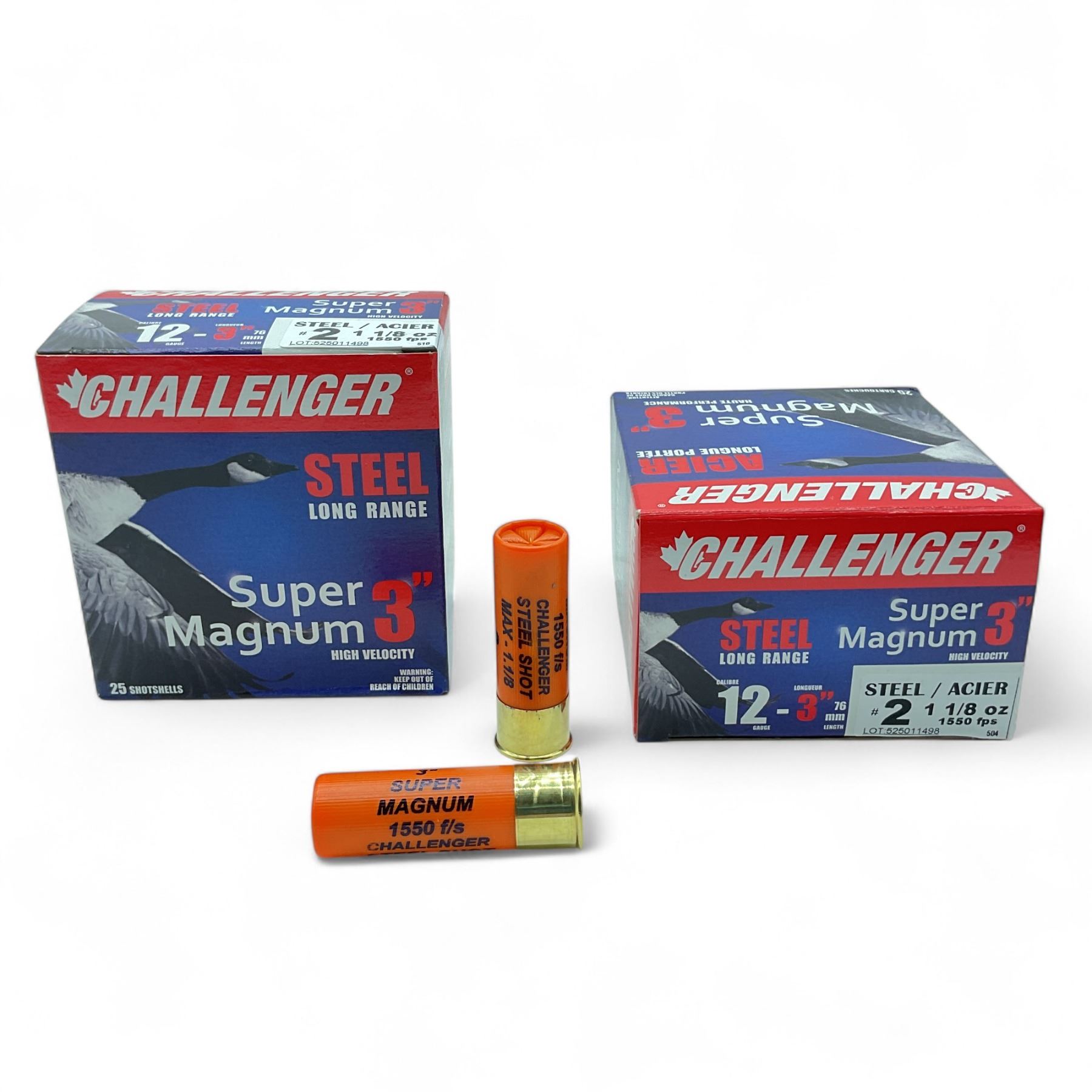 Challenger Super Magnum 12 Gauge, 3", #2 Shot Long Range Steel Ammunition, 50 Rounds