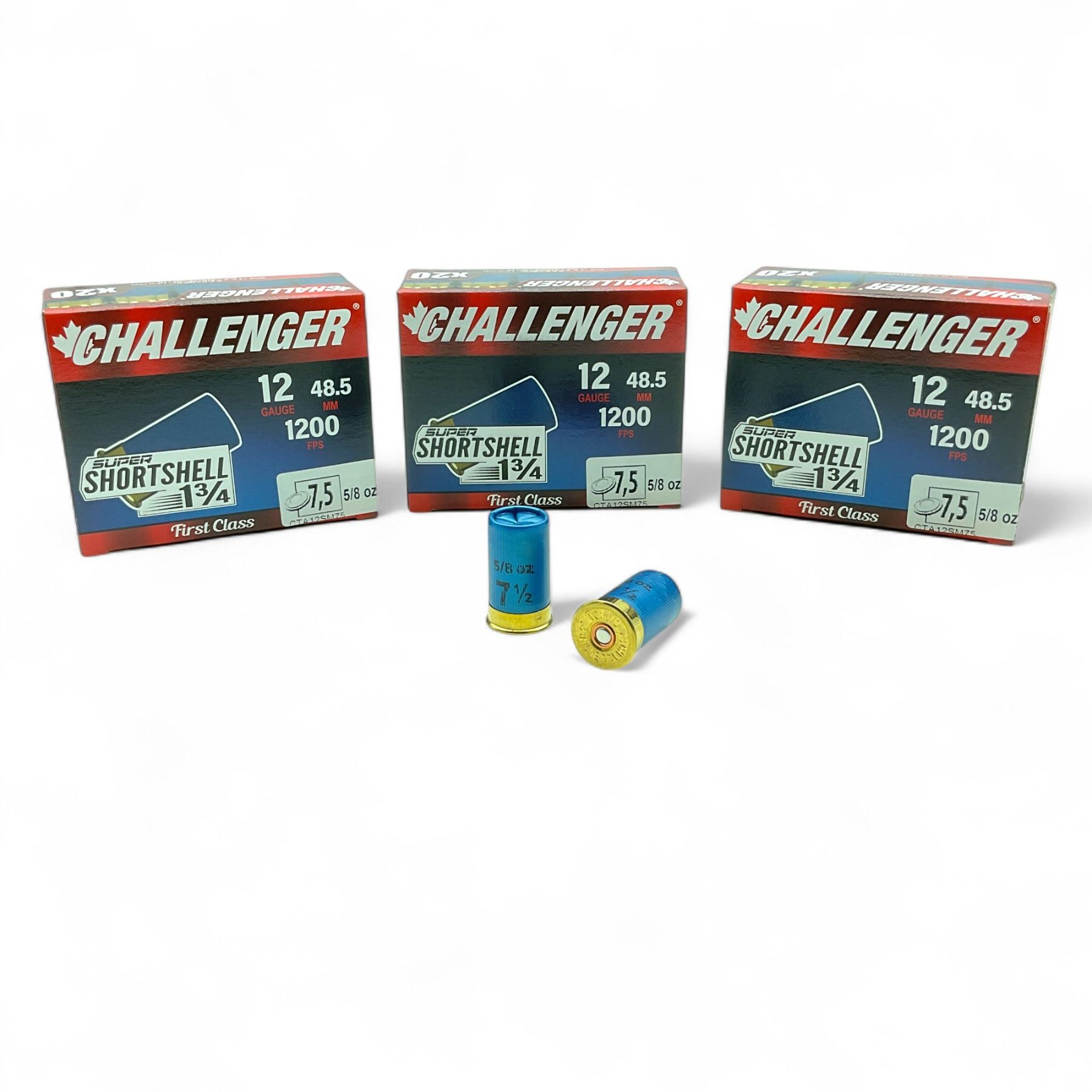 Challenger Super Shortshell 12 Ga 1 3/4", 5/8oz #7.5 Ammunition, 60 Rounds