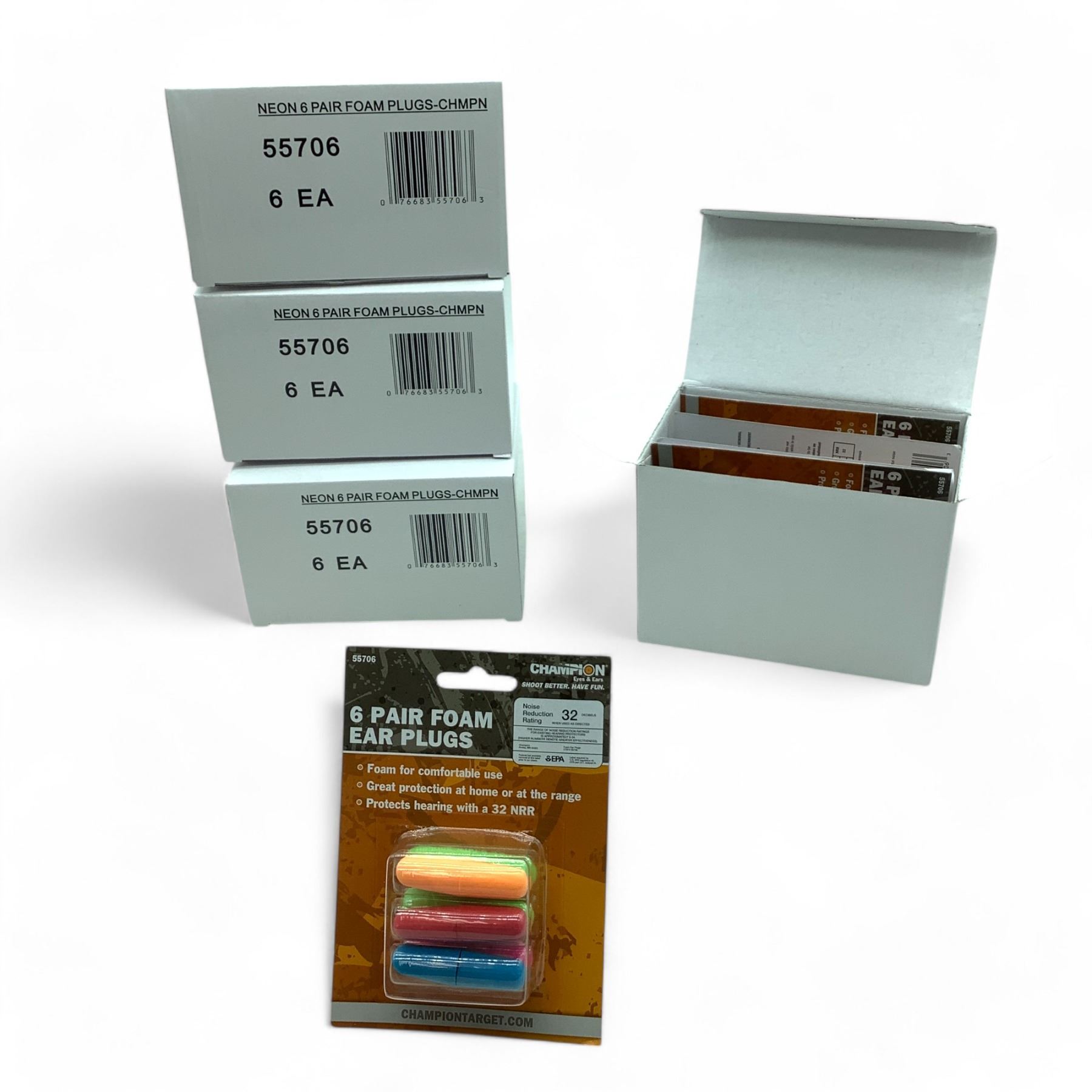 Champion Neon Colored Foam Ear Plugs, 6 Pair Pack X 18 Qty