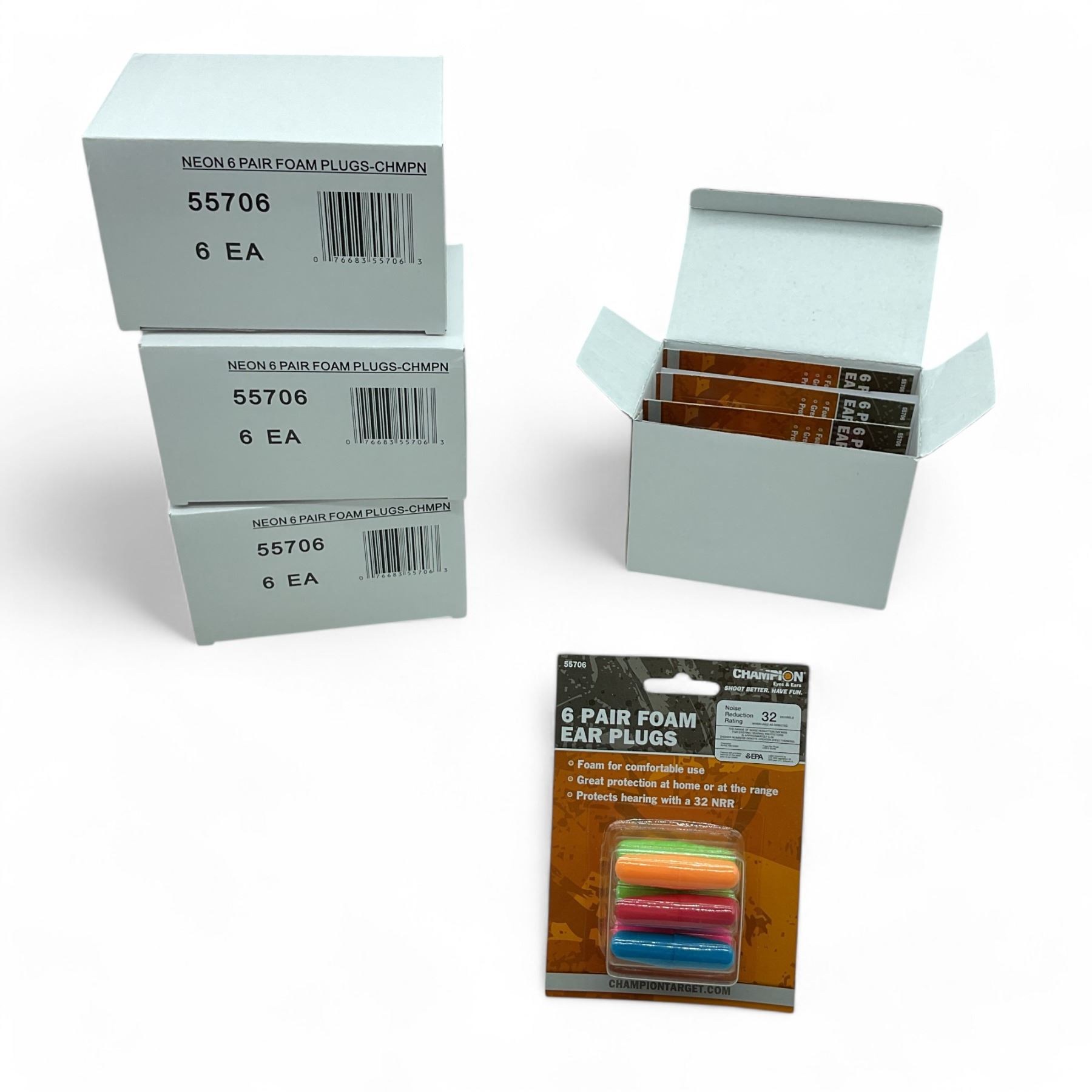 Champion Neon Colored Foam Ear Plugs, 6 Pair Pack X 24 Qty